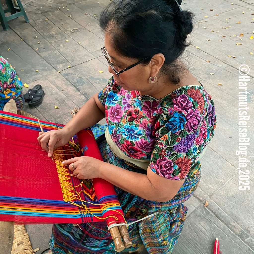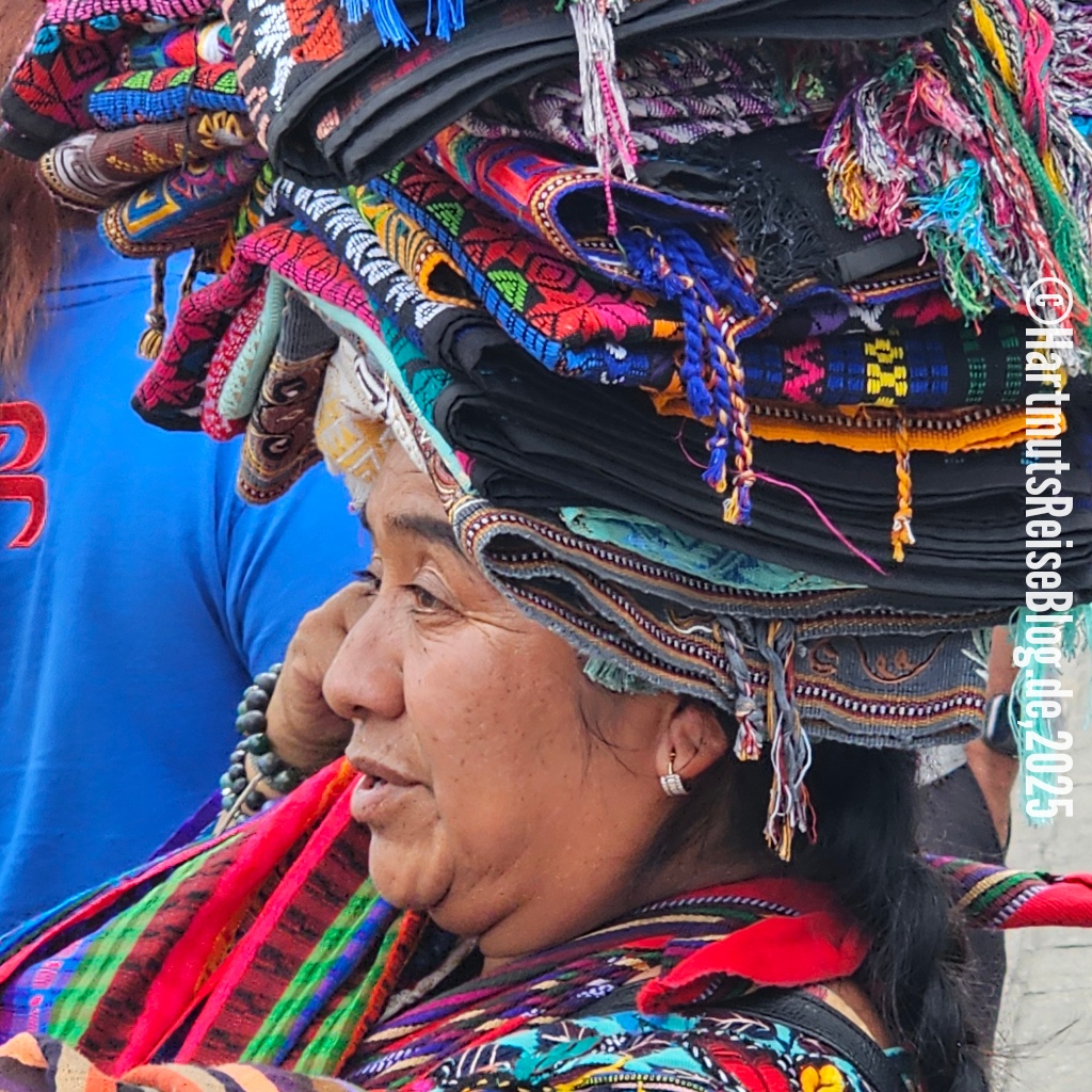 Nachdem uns der Bus “ausgespuckt” hat, gehen wir durch die engen Straßen und über den zentralen Platz. Vieles erinnert mich an meinen Besuch von vor knapp 50 Jahren, soweit dies nach so langer Zeit überhaupt noch möglich ist: die Farbenpracht der traditionellen Frauenkleidung, die quengelnden Straßenverkäuferinnen mit ihren schönen Tüchern und Taschen, das sehr grobe Kopfsteinpflaster, die vielen Touristen aus aller Welt, das angenehme Wetter hier oben, die alten und fast immer einstöckigen Häuser usw.
