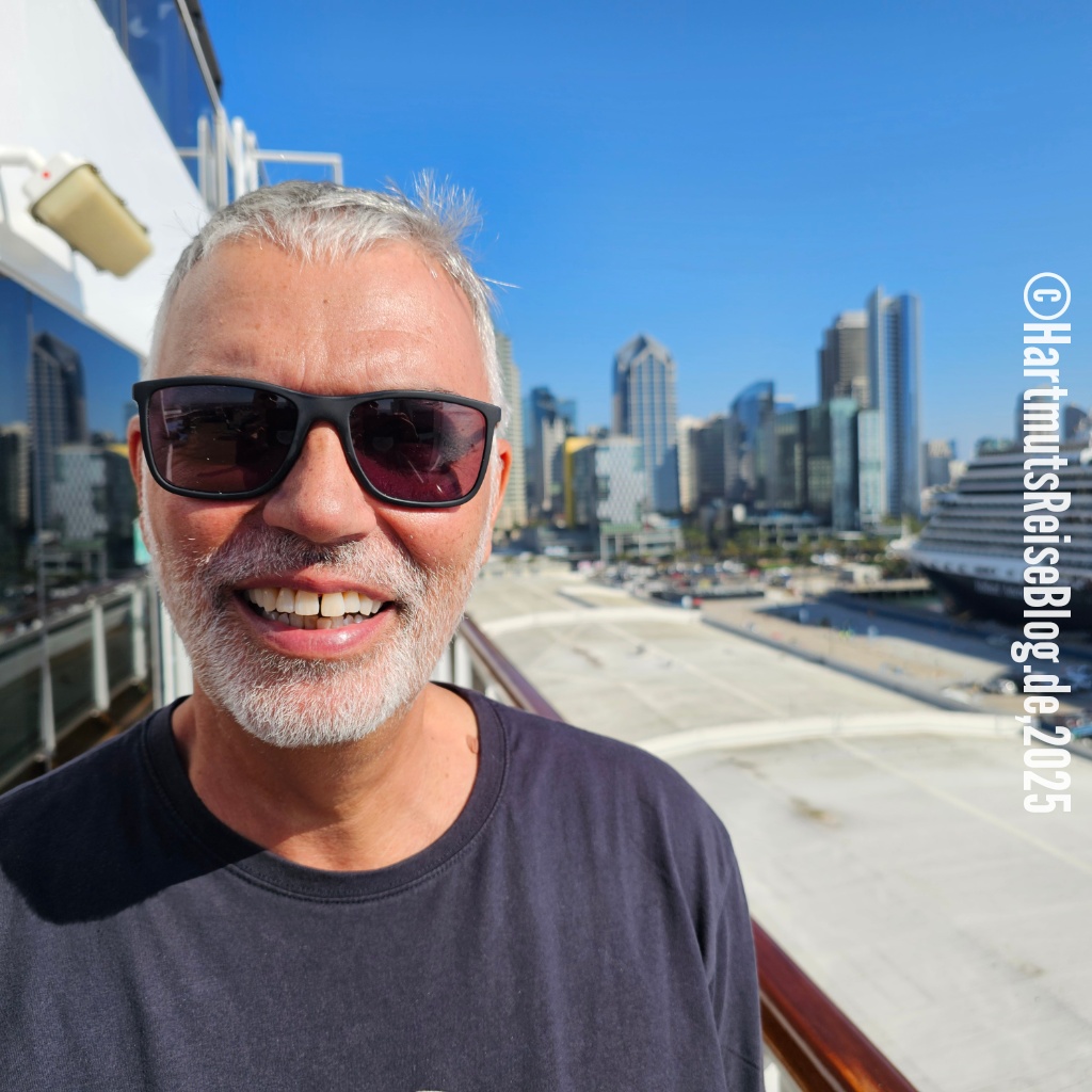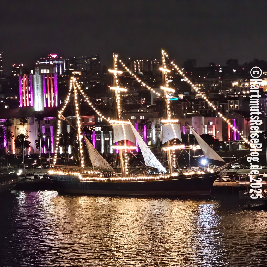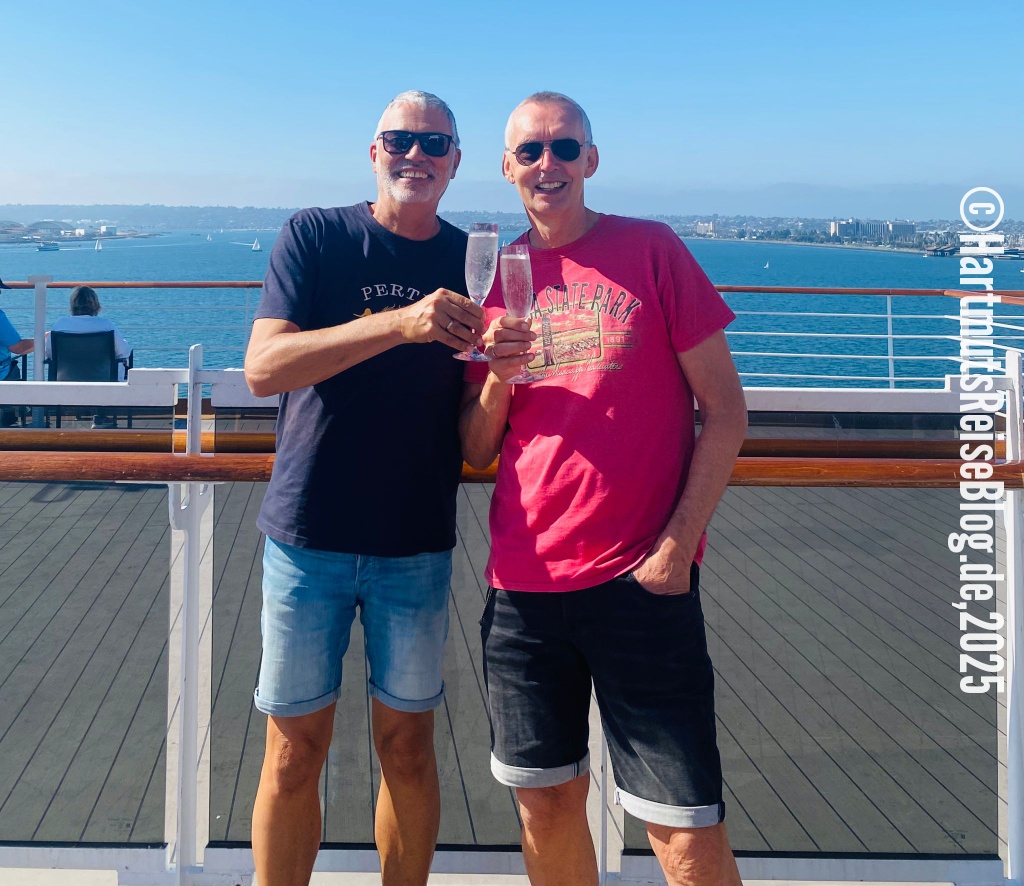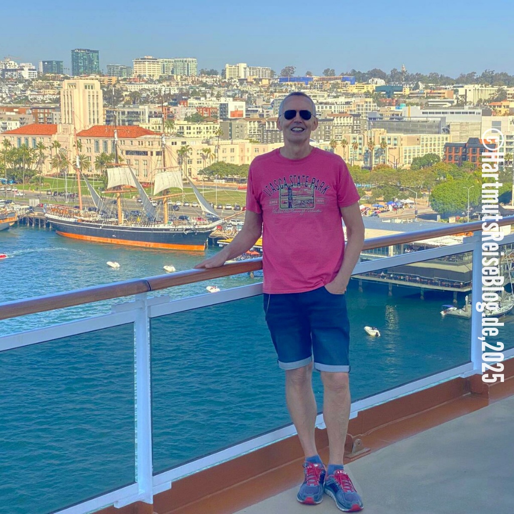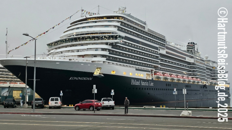 Die Nacht im Wyndham San Diego Bayside ist eher unruhig. Vielleicht liegt es an der heute beginnenden Kreuzfahrt. Als wir aufstehen, liegt die MS Koningsdam bereits auf der anderen Straßenseite. Wir gehen erst frühstücken …