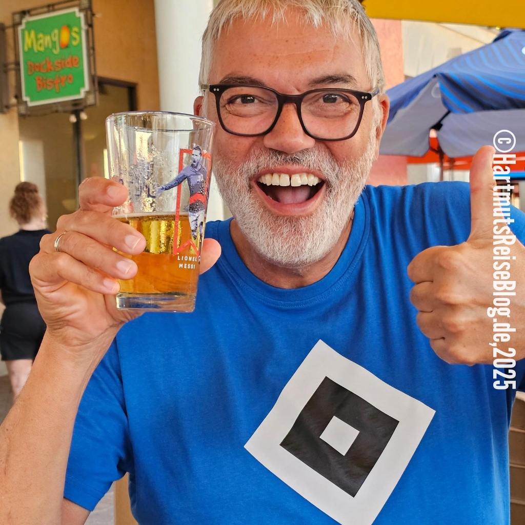 Nachdem sich die Sonne auch in der Realität durchgesetzt hat, drehen wir eine kleine Runde. Zum Abschluss des Spazierganges gibt’s einen Cappuccino im Mango’s. Heute Abend wollen wir dort ein letztes Mal essen. Wir denken viel über unsere lange Reise, die nächsten zwei Monate bei uns zuhause und die in 2026 anstehenden Reisen nach. Zwischendurch spielen wir auf unserer Terrasse Rummikub. Das Spiel kommt auch bei zukünftigen Reisen in unser Gepäck.