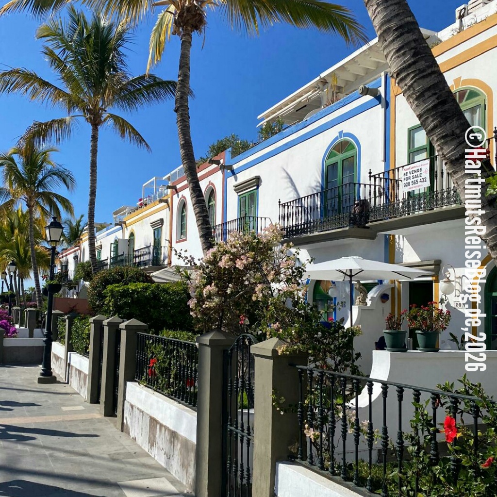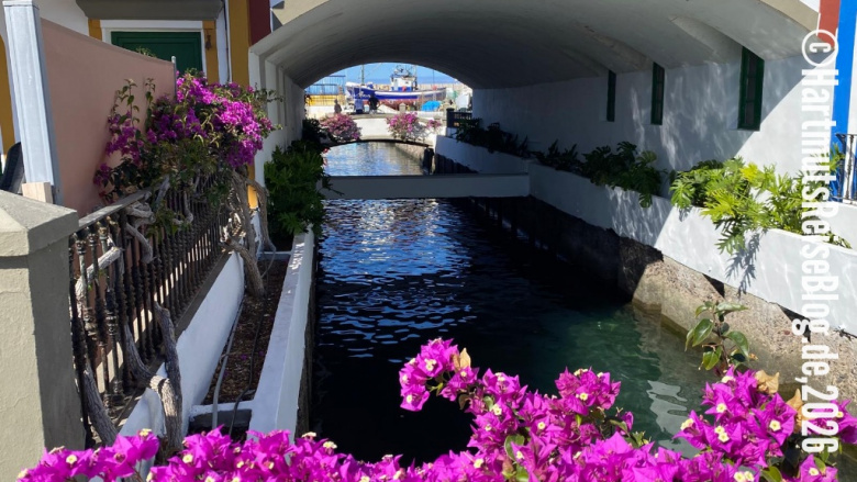 Wir treffen aber auch eine gute Entscheidung: Im Zentrum von Puerto de Mogán lassen wir uns in einem Restaurant mit dem Namen „Mi Vida“ nieder. Die Einrichtung ist sehr ausgefallen und der Service überaus freundlich. Wir trinken einen Cappuccino und bestellen dazu etwas Süßes. Anschließend schieben wir uns durch die überfüllten Gassen, die vor allem durch die herrlichen Bougainvilleas in Erinnerung bleiben. Bald fahren wir jedoch zurück nach Monte León. Aber wir kommen wieder, sicherlich nicht an einem Freitag.