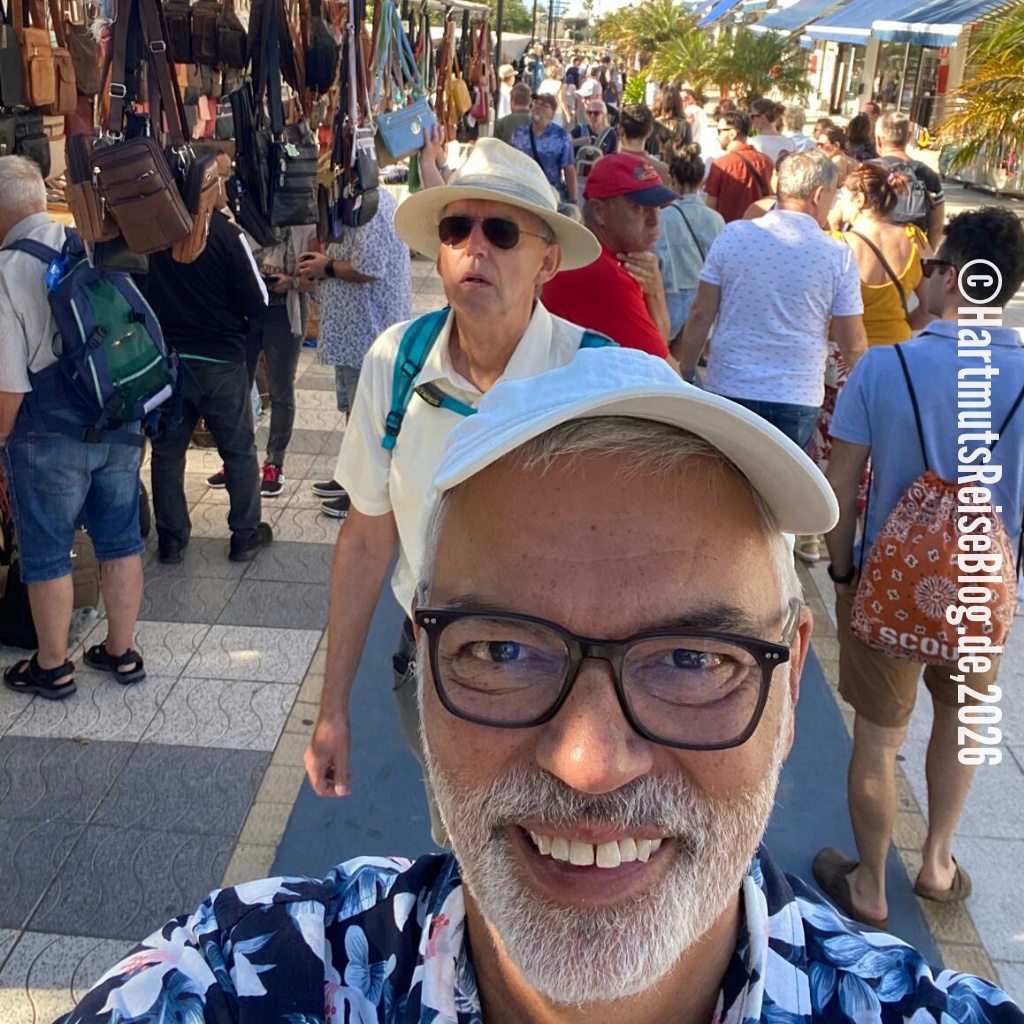 Wir treffen heute zwei schlechte Entscheidungen: Wir fahren am falschen Tag nach Puerto de Mogán und parken dort auf dem falschen Parkplatz. Freitag ist Markttag in Puerto de Mogán. Das bedeutet, dass es dort unendlich viele Stände gibt, die alle den gleichen Ramsch anbieten. Trotzdem scheinen alle Touristen aus dem Süden Gran Canarias vor Ort zu sein, um das Angebot in Augenschein zu nehmen. Wir sehen nur wenige Besucher, die tatsächlich etwas kaufen.