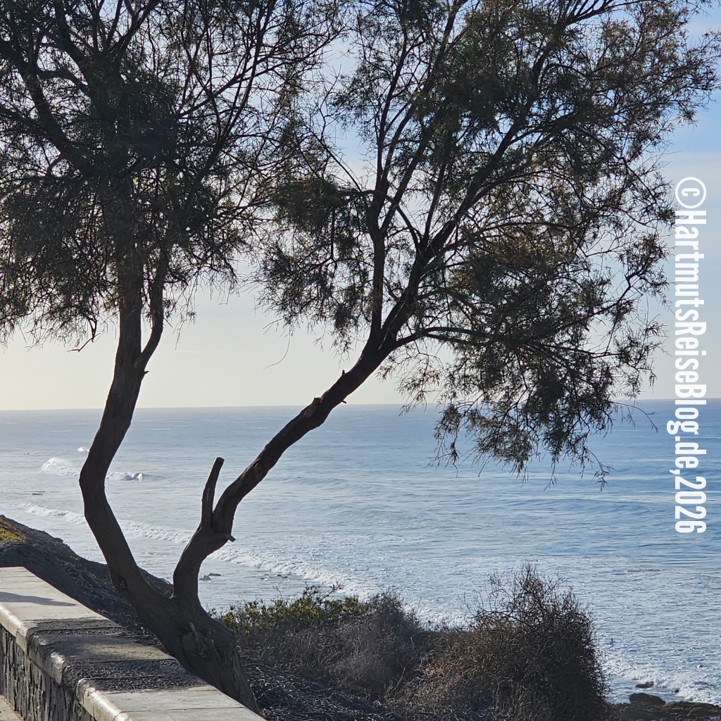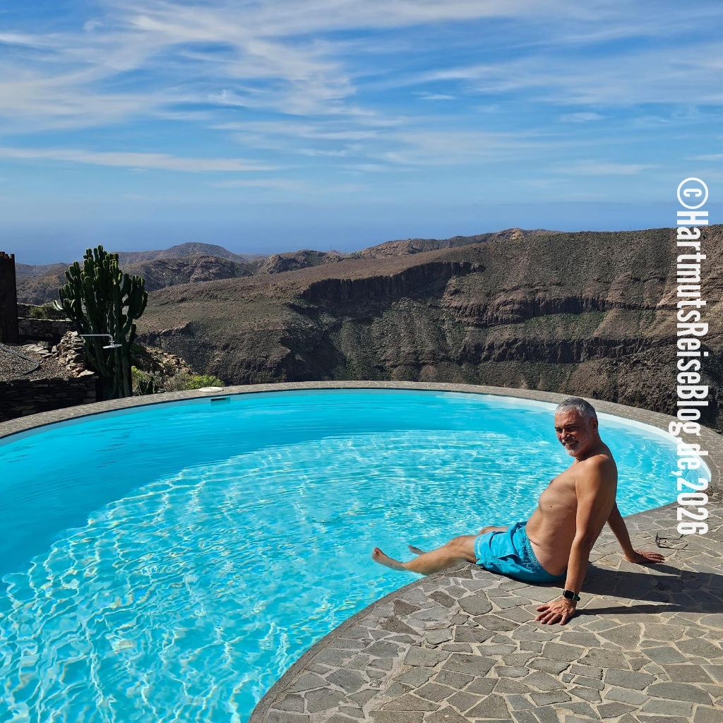 Nach einer erholsamen Nacht frühstücken in der Wohnung. Draußen ist es noch recht frisch. 20 Minuten brauchen wir für die 12 Kilometer nach Meloneras. Beim Hotel H10 wird unser Auto abgestellt, bevor wir vom Playa Meloneras bis zum Faro gehen. Dort gibt es einen Cappuccino. Wir gehen durch das Hotel Villa del Conde, wo Andreas und ich schon häufiger unsere Tage auf Gran Canaria verbracht haben. Nach einem Einkauf geht’s zurück zum Ferienhaus, das von den Eigentümern als Chalet bezeichnet wird. Wir entspannen uns bei sommerlichem Wetter am Pool.