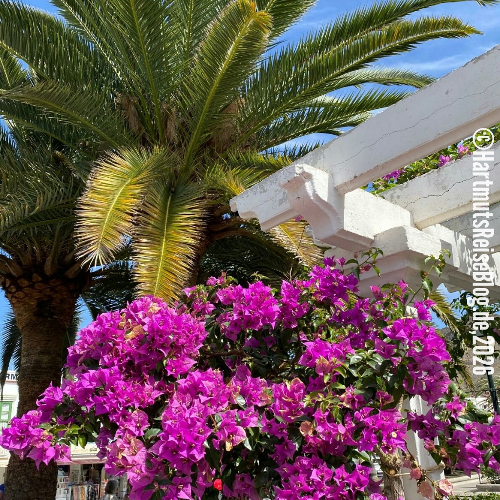Vor drei Wochen kamen wir in Monte León an, und in zwei Wochen geht es zurück nach Köln. Die wichtigsten Sehenswürdigkeiten im Süden Gran Canarias haben wir gesehen. In der Hauptstadt Las Palmas waren wir ebenfalls. Jetzt beginnt die “Vertiefungsphase”: Wo war es besonders schön, wo wollen wir noch einmal hin? Einer dieser Orte ist Puerto de Mogán. Uns gefallen dort vor allem die kleinen Kanäle mit ihren Brücken und die üppige Vegetation. Bougainvillea, Palmen und andere Pflanzen ziehen sich entlang der weißen Häuser und geben dem Hafenbereich ein grünes Erscheinungsbild. Heute sind nicht ganz so viele Besucher im Ort, denn es ist kein Markttag.