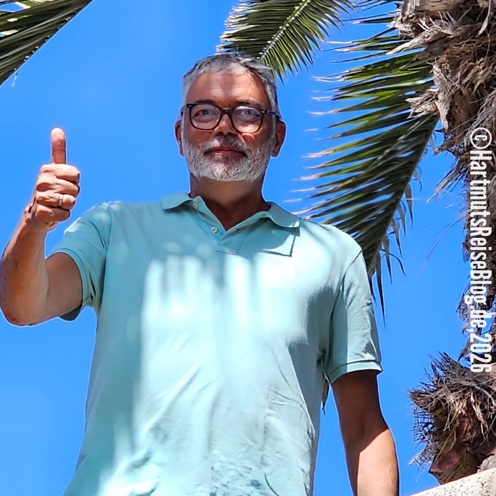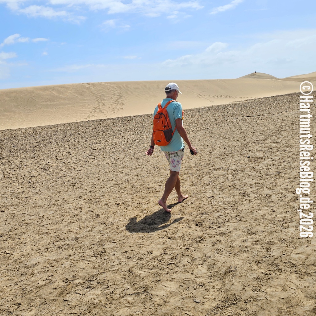 Nach einem schönen Nachmittag und Abend mit Freunden aus Köln (und ein bisschen Rotwein) sind wir heute leicht angeschlagen. Trotzdem holen wir die Wanderung nach, die vorgestern witterungsbedingt ausgefallen war. Das Auto parken wir nach dem Tanken beim Hotel H10 in Meloneras. Dann geht es auf direktem Weg zum Riu Palace Maspalomas. Durch die Dünen wandern wir danach zur sogenannten Strand-apo-Theke in der Nähe des Faro. Nach ein paar Kölsch und insgesamt 13 Kilometern fahren wir mit dem T-Roc zurück „auf unseren Berg“.