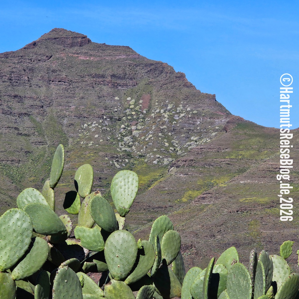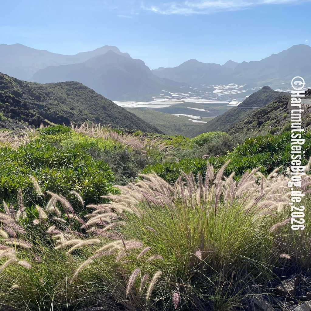 Bis Puerto de Mogán fahren wir über die Autobahn. Dann geht’s auf einer immer schmaler werdenden Straße über Mogán zum Aussichtspunkt Mirador del Balcón. Dieser liegt 400 Meter über dem Meer und bietet einen tollen Ausblick. Auf einer Seite sieht man den so genannten Drachenschwanz.