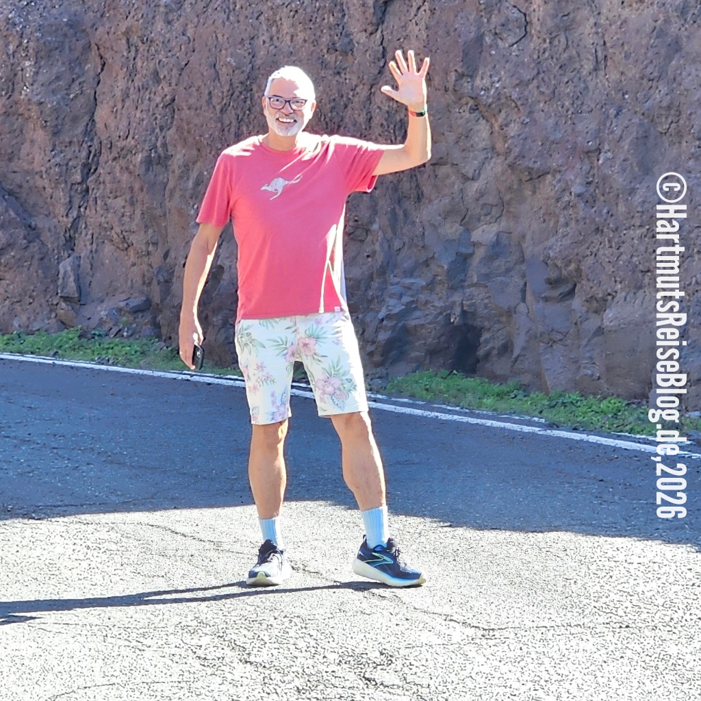 Das Ziel unseres Ausflugs heute ist der Mirador del Balcón im Nordwesten Gran Canarias. Kurz nach dem Start in Monte León müssen wir an einer Einmündung länger warten, da hier gerade ein Radrennen stattfindet. Gran Canaria scheint bei Radfahrern sehr beliebt zu sein.