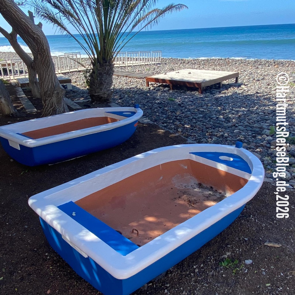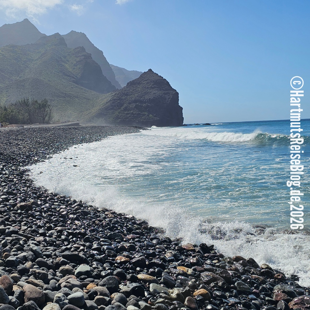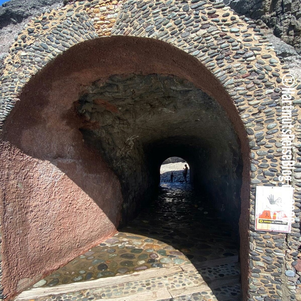 Auf der Rückfahrt legen wir einen ersten Stopp in dem kleinen Küstenort Puerto de la Aldea ein. Dort verbindet ein kurzer Tunnel zwei Strandabschnitte.