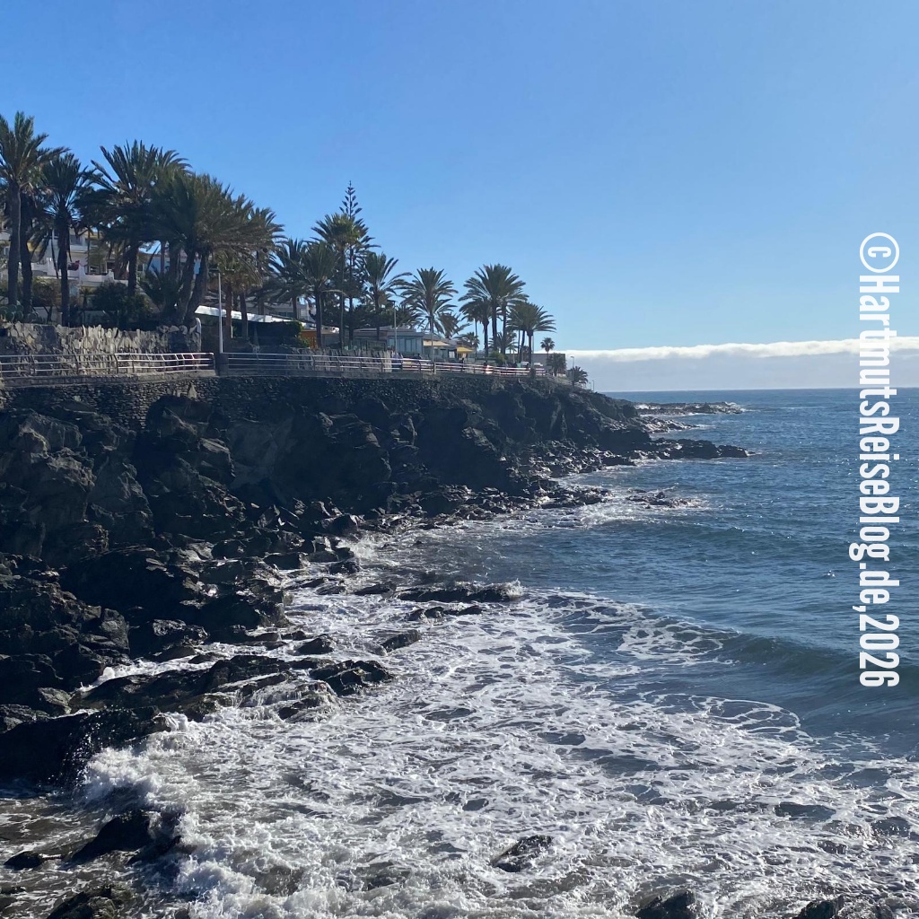 Der Tag ist schnell erzählt: Kurz nach Sonnenaufgang frühstücken wir in unserer Ferienwohnung. Anschließend unternehmen wir einen langen Spaziergang durch San Agustín. Danach geht’s zum Aldi, denn dort bekommen wir auch Quark für unseren nächsten Kuchen. Zurück in der Wohnung verfolgt Andreas eine Biathlon-Übertragung von den Olympischen Winterspielen. Am späten Nachmittag erwarten wir Besuch von Freunden aus Köln.