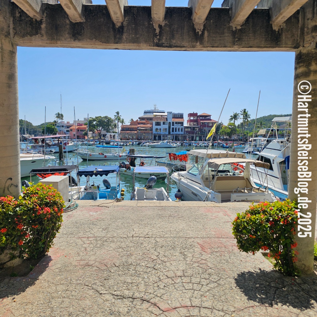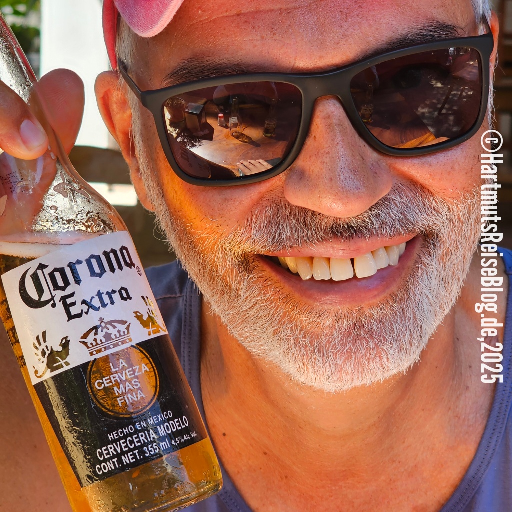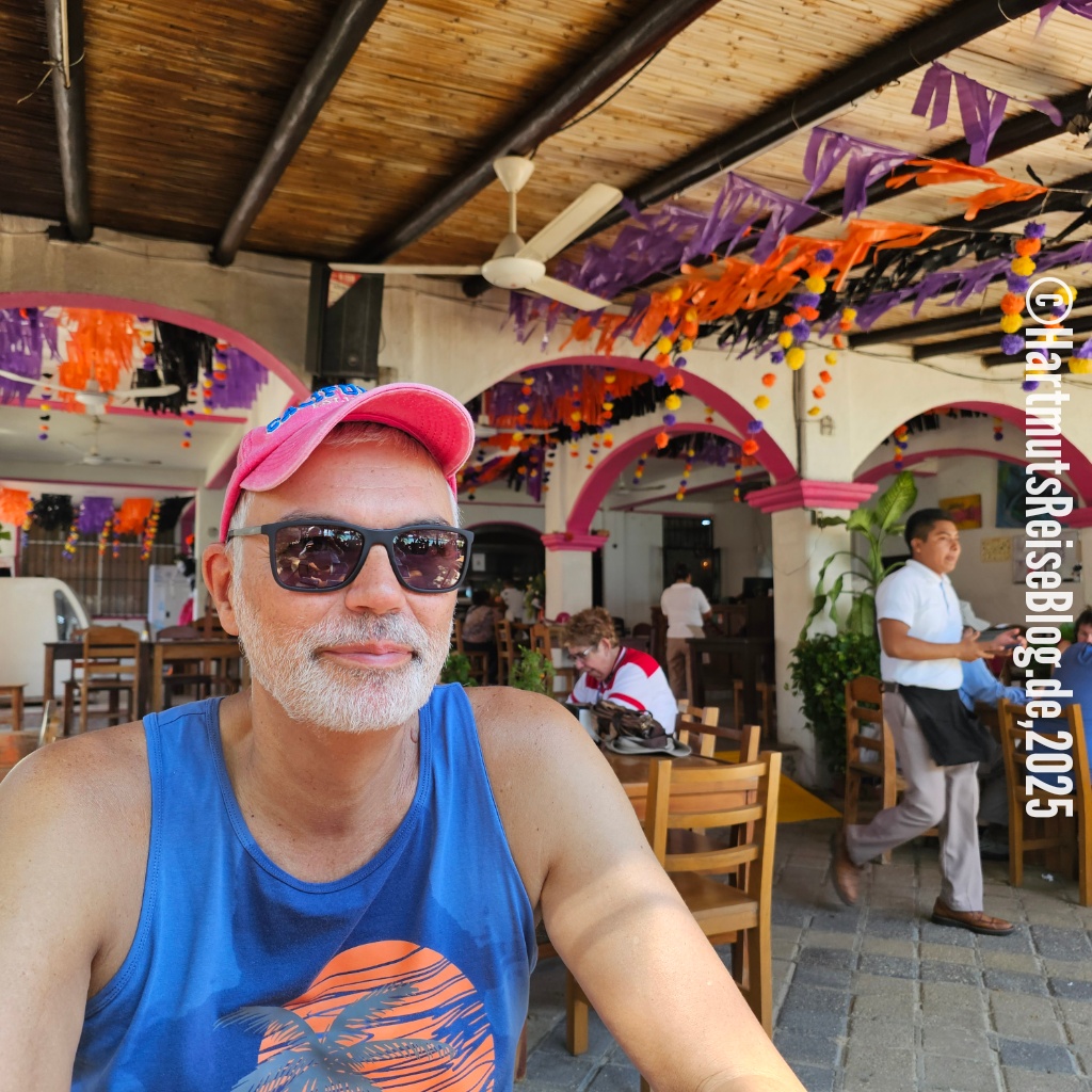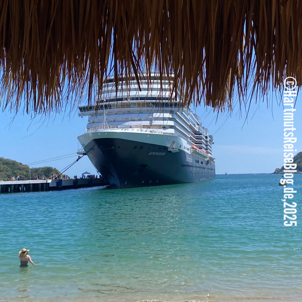 Huatulco heißt der kleine Badeort an der Küste Oaxacas, den unser Schiff heute anläuft (Aussprache: wa’tul.co). Er besteht aus vielen Buchten mit sauberen Stränden. Santa Cruz ist die zentrale Bucht. Hier liegt der Kreuzfahrthafen sowie der Strand Playa Santa Cruz. In der Umgebung gibt es Boote für Ausflüge zu anderen Buchten, Geschäfte und kleine Restaurants. Wir erkunden die nähere Umgebung, kaufen zwei T-Shirts und trinken kühles Corona.
