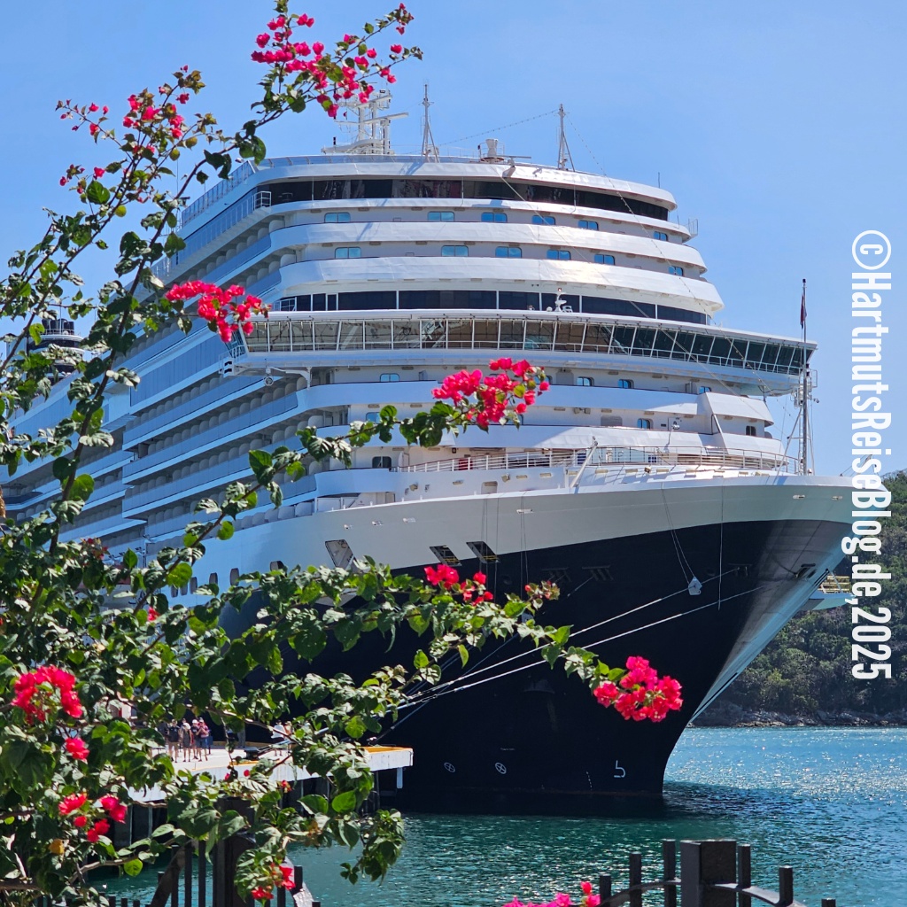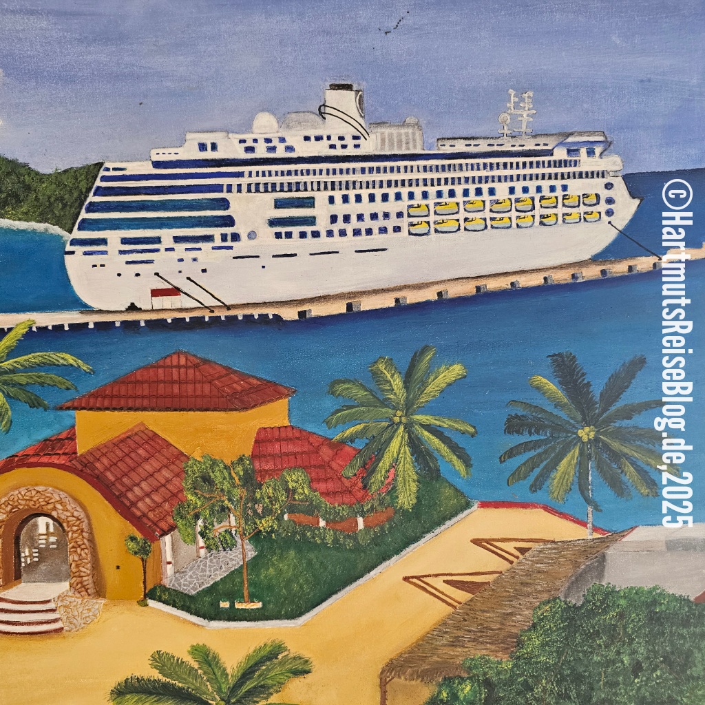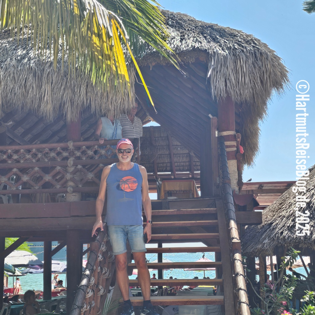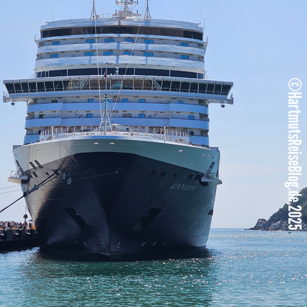 Huatulco heißt der kleine Badeort an der Küste Oaxacas, den unser Schiff heute anläuft (Aussprache: wa’tul.co). Er besteht aus vielen Buchten mit sauberen Stränden. Santa Cruz ist die zentrale Bucht. Hier liegt der Kreuzfahrthafen sowie der Strand Playa Santa Cruz. In der Umgebung gibt es Boote für Ausflüge zu anderen Buchten, Geschäfte und kleine Restaurants. Wir erkunden die nähere Umgebung, kaufen zwei T-Shirts und trinken kühles Corona.