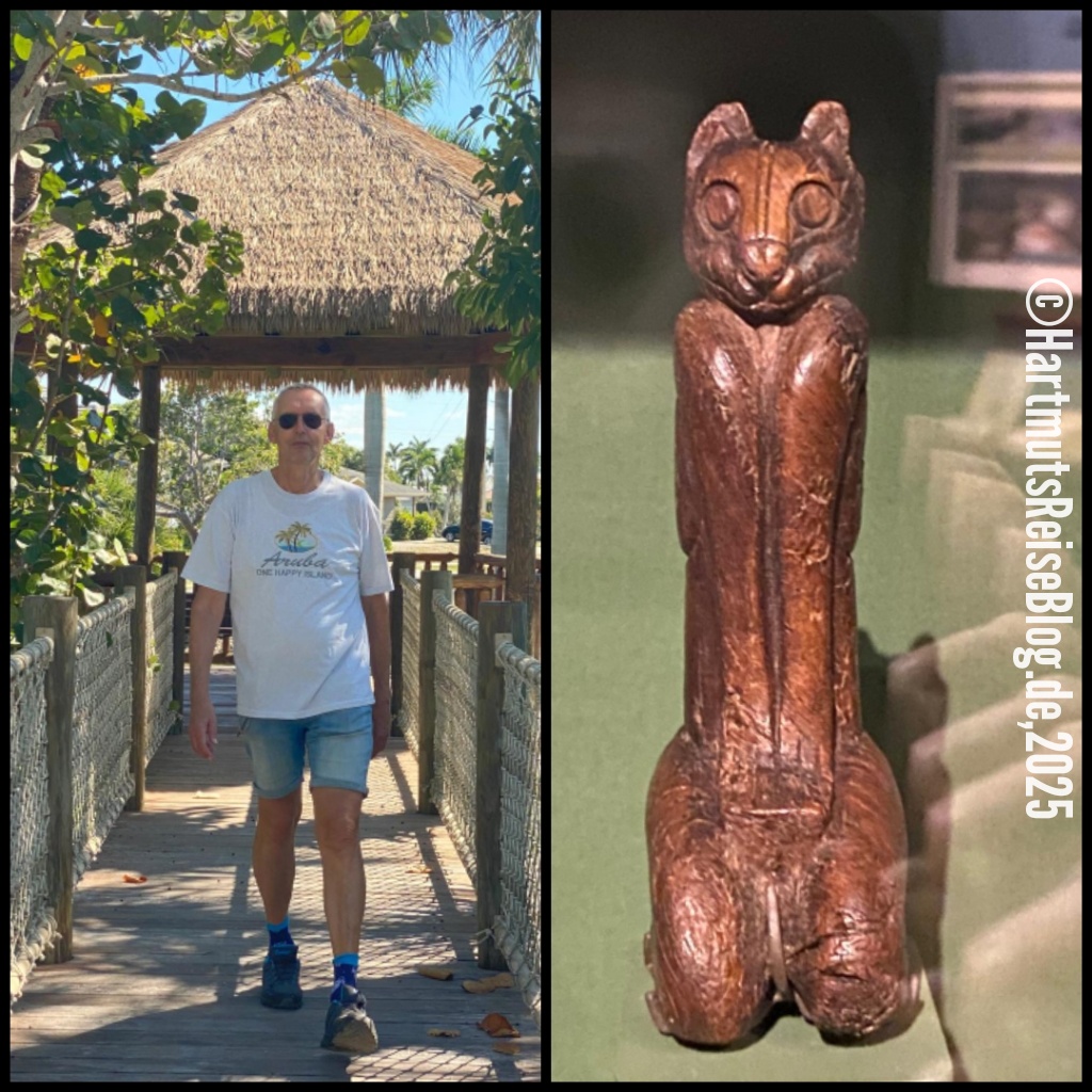 Später schauen wir uns die Key Marco Cat an. Dies ist eine kleine, über 500 Jahre alte Holzfigur der Calusa, entdeckt 1896 auf Marco Island. Sie gilt als einer der bedeutendsten archäologischen Funde Floridas. Im Marco Island Historical Museum wird das Original zurzeit in einer gesicherten Vitrine gezeigt. Im Hof des Museums steht eine große Nachbildung. Wir unterhalten uns mit einer älteren Dame im Museumsshop über ihre persönliche Geschichte, über die berühmte Katze und über Hurrikans in Florida. Das erinnert mich an meinen früheren Museumsjob in Köln.