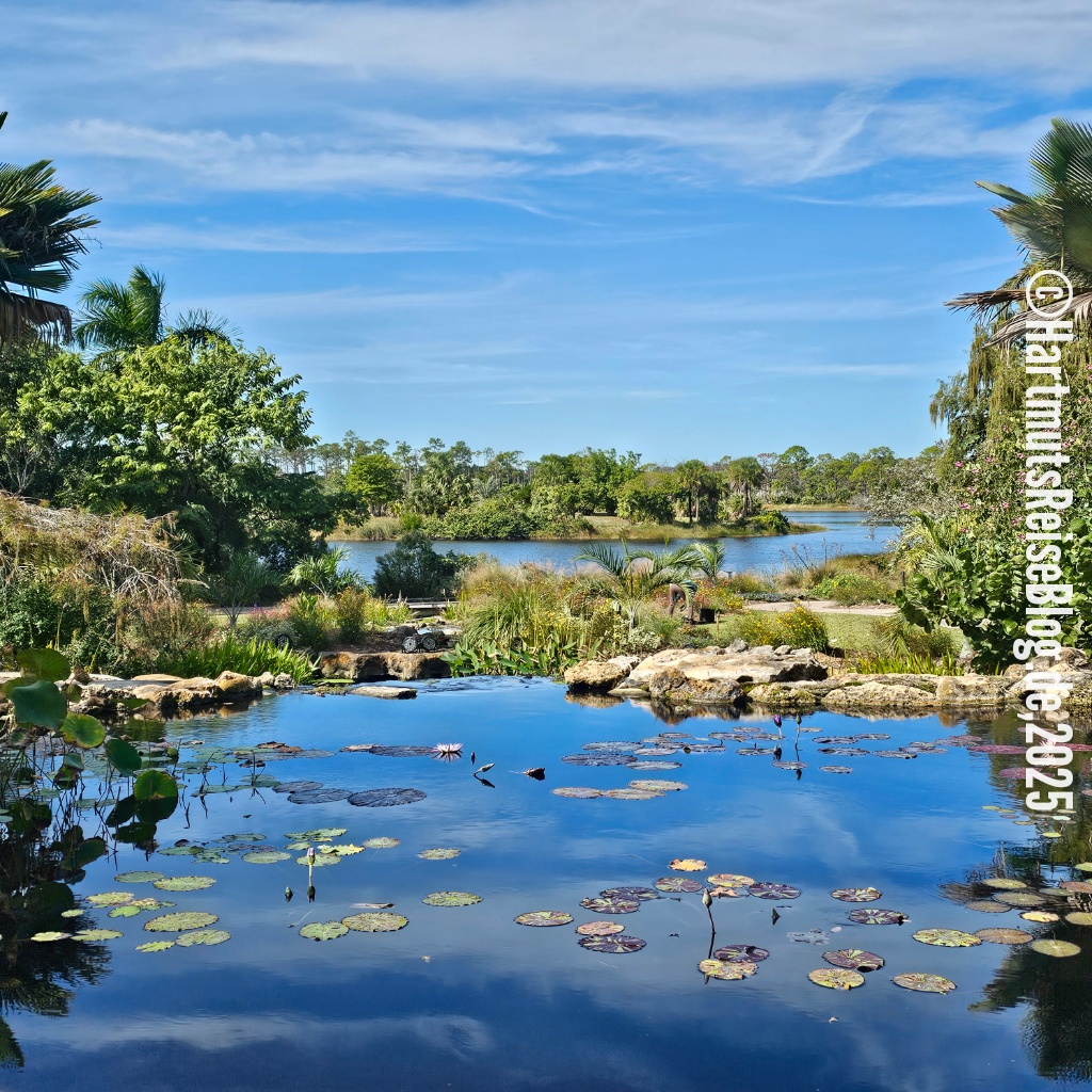 Zum Frühstück fahren wir wieder zum Island Café in Everglades City. Das Restaurant serviert Gerichte, die typisch sind für die einfache bodenständige Küche Amerikas. Danach geht’s zurück in Richtung Norden. Der Naples Botanical Garden ist unser Ziel. Ich bin überrascht, wie schön der große Garten ist. Nach einem längeren Rundgang lassen wir uns mit einem Cappuccino an einem Seerosenteich nieder. Glücklicherweise haben wir inzwischen 19 Grad und Sonne.