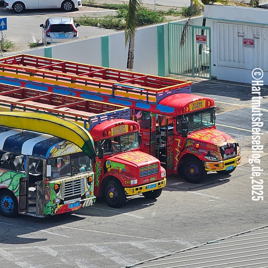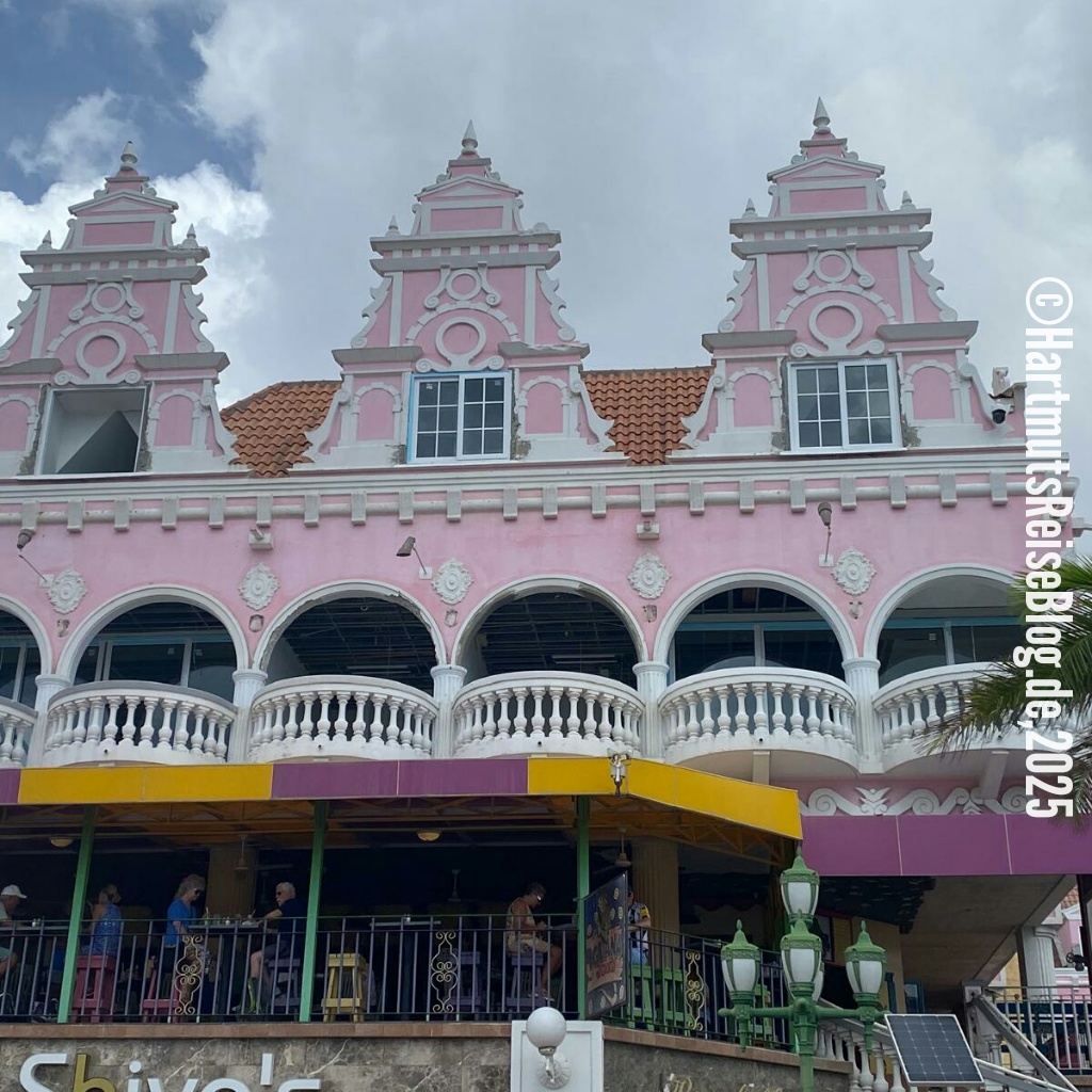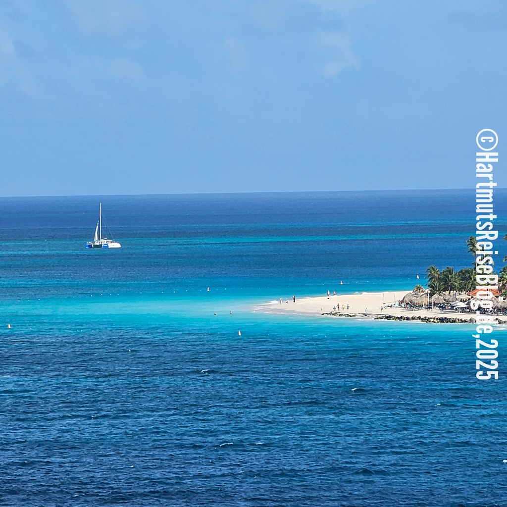 Aruba ist eine autonome Karibikinsel des Königreichs der Niederlande, 25 Kilometer nördlich von Venezuela. Aruba ist nicht einmal halb so groß wie Köln und hat nur gut 100.000 Einwohner. Die Hauptstadt ist Oranjestad. Die Insel ist ein wichtiges Touristenziel mit ganzjährig warmem Klima. Heute liegen neben der MS Koningsdam noch zwei weitere Kreuzfahrtschiffe im Hafen.