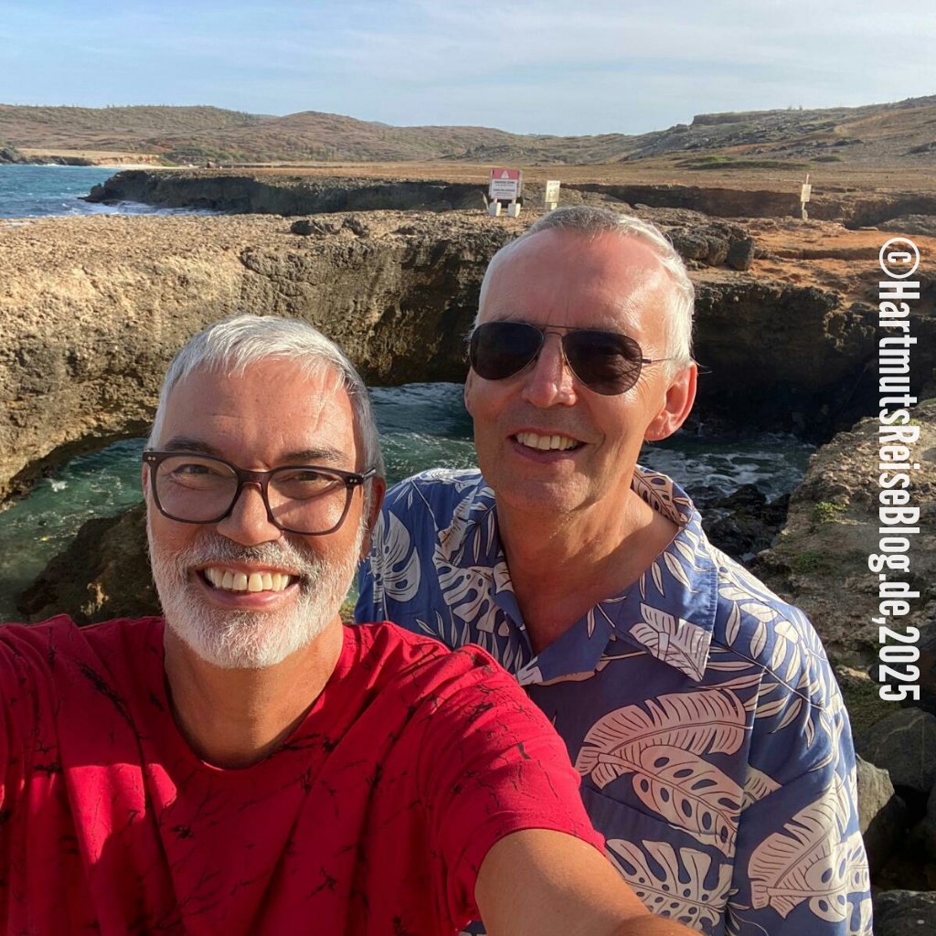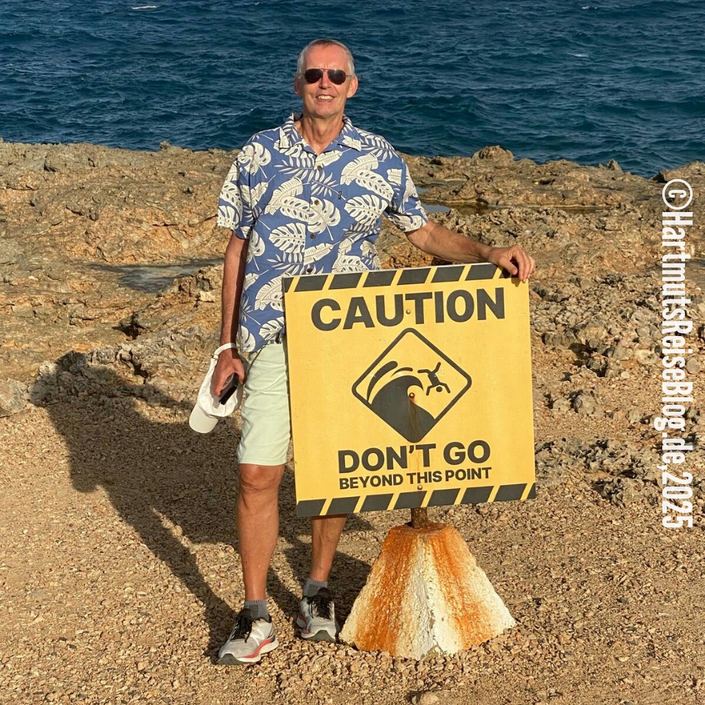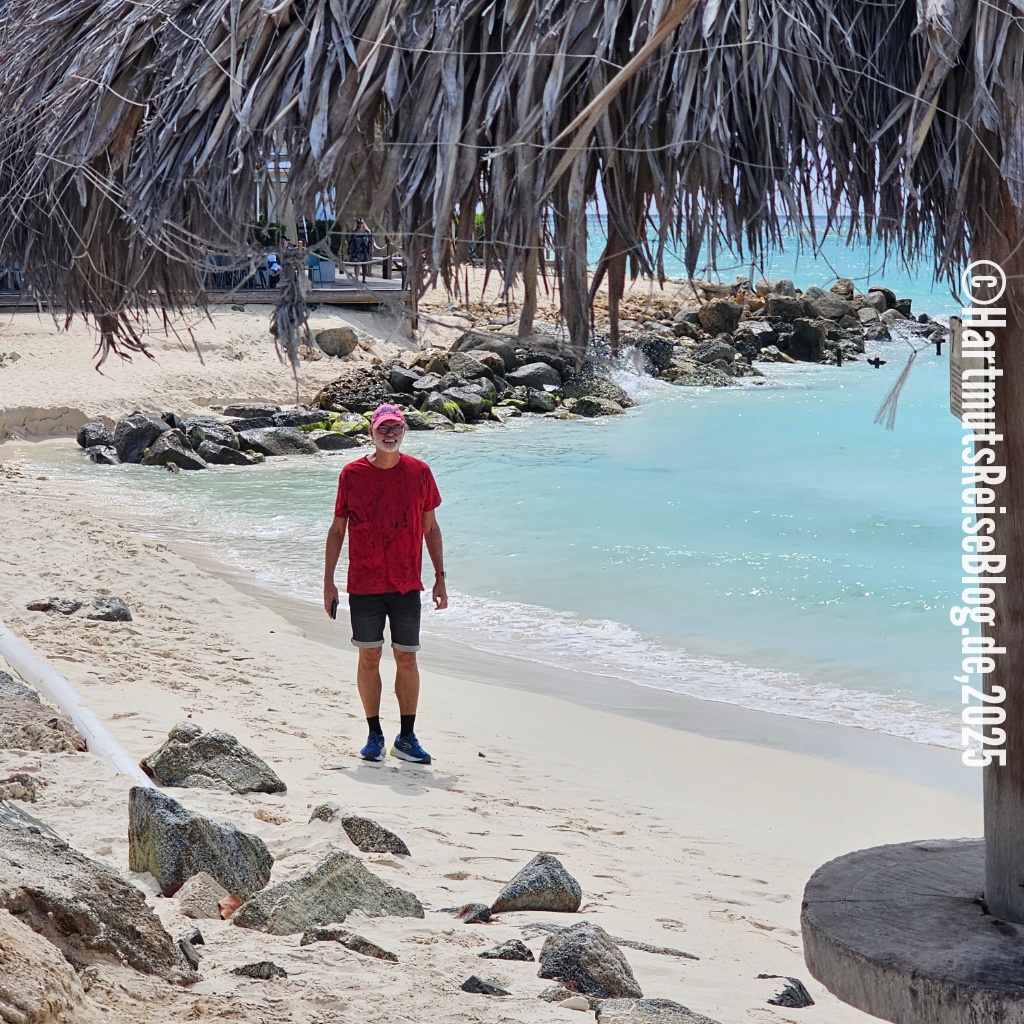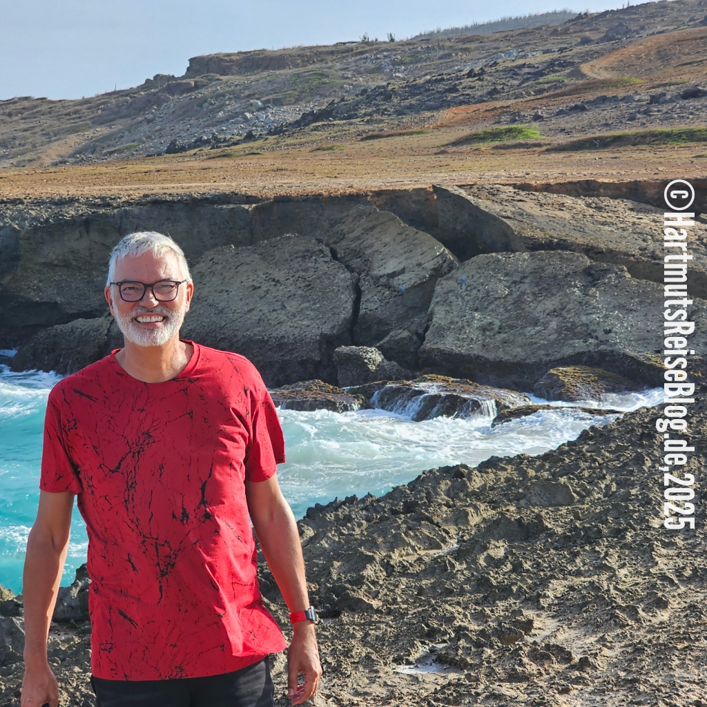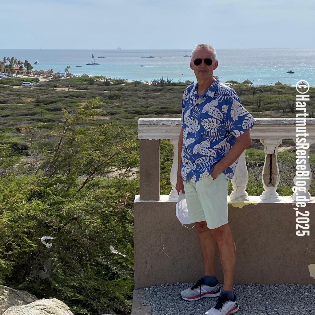 Wir verlassen das Schiff und fahren mit einem öffentlichen Bus zum Arashi Beach im Norden Arubas. Auf der Rückfahrt nach Oranjestad steigen wir vorzeitig aus, um Teile der Hauptstadt Arubas zu Fuß zu erkunden. Unterwegs kaufen wir zwei T-Shirts, trinken (wegen der knapp 30 Grad) alkoholfreies Bier und gehen zum Treffpunkt für die Rundfahrt am Nachmittag: “Aruba Town & Countryside” heißt die Tour, die unser Fahrer und Führer gekonnt und humorvoll leitet. Während der dreieinhalb Stunden sehen wir uns u. a. das California Lighthouse (leider verhüllt), eine alte Kapelle und die “Natural Bridge” an. Die große Brücke ist 2005 eingestürzt, jetzt gibt’s nur noch die “Baby Bridge”. Außerdem besteigt Andreas noch eine “Felsfomation”. Die Exkursion ist informativ und kurzweilig. Am frühen Abend sind wir zurück im Hafen. Abends essen wir im Dining Room.