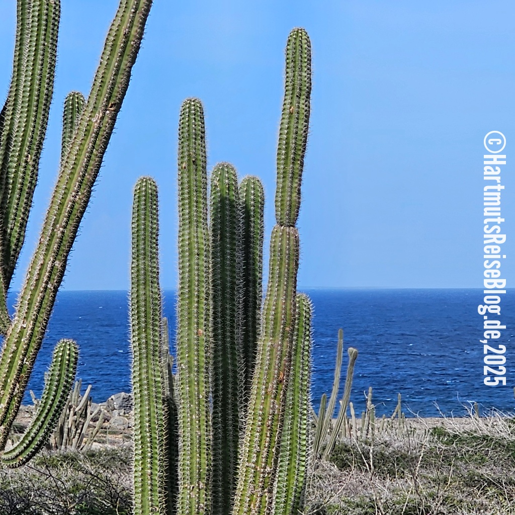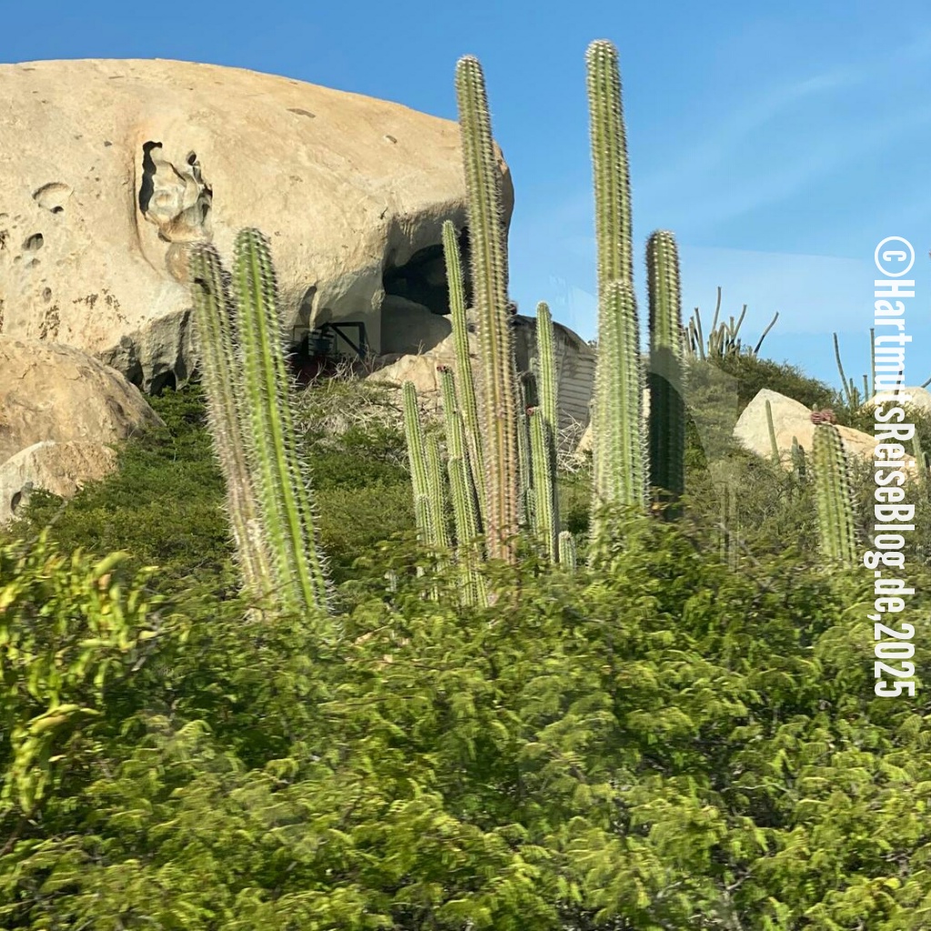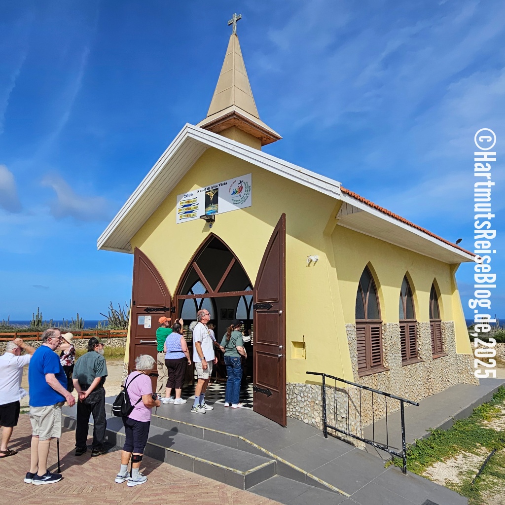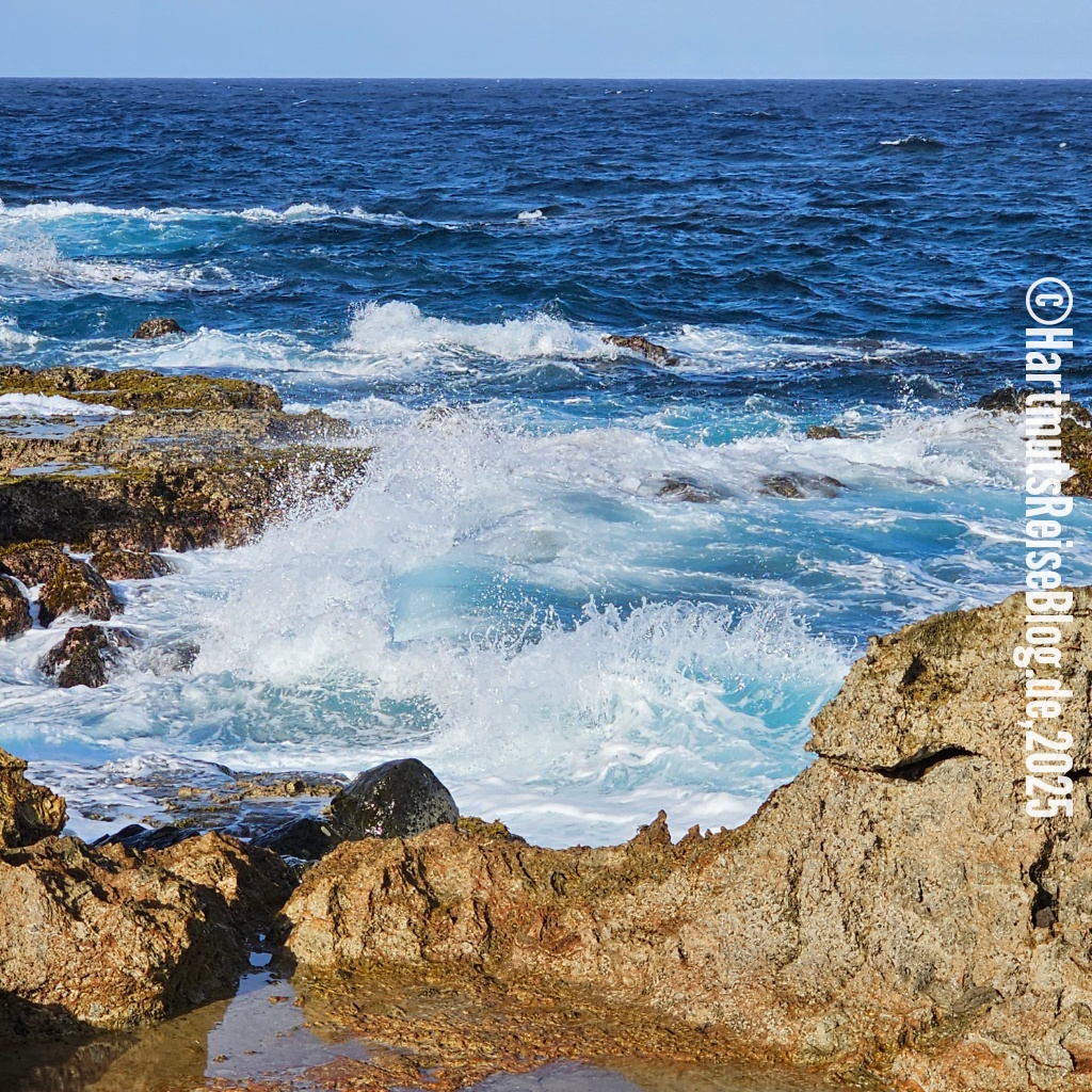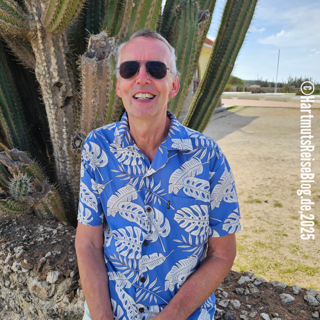 Wir verlassen das Schiff und fahren mit einem öffentlichen Bus zum Arashi Beach im Norden Arubas. Auf der Rückfahrt nach Oranjestad steigen wir vorzeitig aus, um Teile der Hauptstadt Arubas zu Fuß zu erkunden. Unterwegs kaufen wir zwei T-Shirts, trinken (wegen der knapp 30 Grad) alkoholfreies Bier und gehen zum Treffpunkt für die Rundfahrt am Nachmittag: “Aruba Town & Countryside” heißt die Tour, die unser Fahrer und Führer gekonnt und humorvoll leitet. Während der dreieinhalb Stunden sehen wir uns u. a. das California Lighthouse (leider verhüllt), eine alte Kapelle und die “Natural Bridge” an. Die große Brücke ist 2005 eingestürzt, jetzt gibt’s nur noch die “Baby Bridge”. Außerdem besteigt Andreas noch eine “Felsfomation”. Die Exkursion ist informativ und kurzweilig. Am frühen Abend sind wir zurück im Hafen. Abends essen wir im Dining Room.