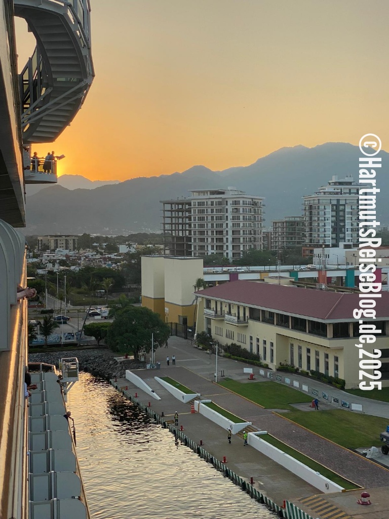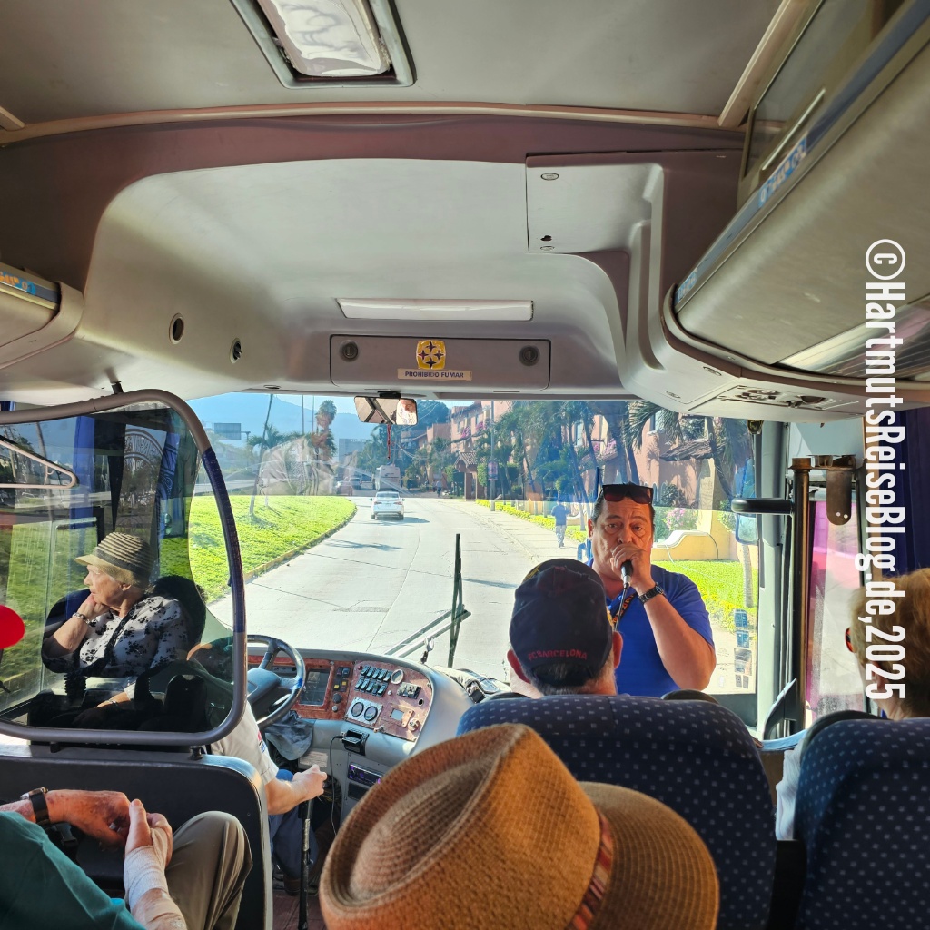 Auf der Rückfahrt zum Hafen quält sich der Bus durch die völlig überfüllten Straßen. Um 16 Uhr verlässt die MS Koningsdam den Hafen von Puerto Vallarta.