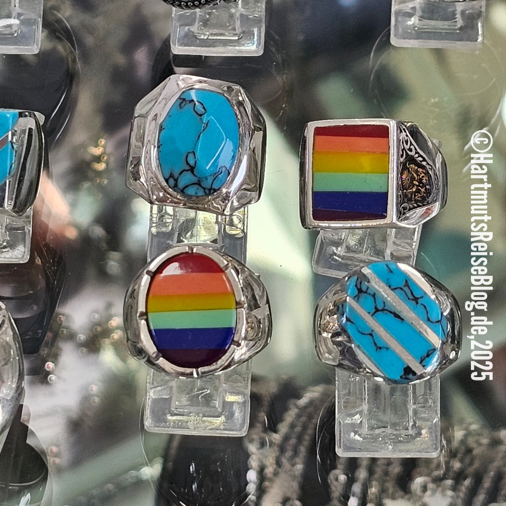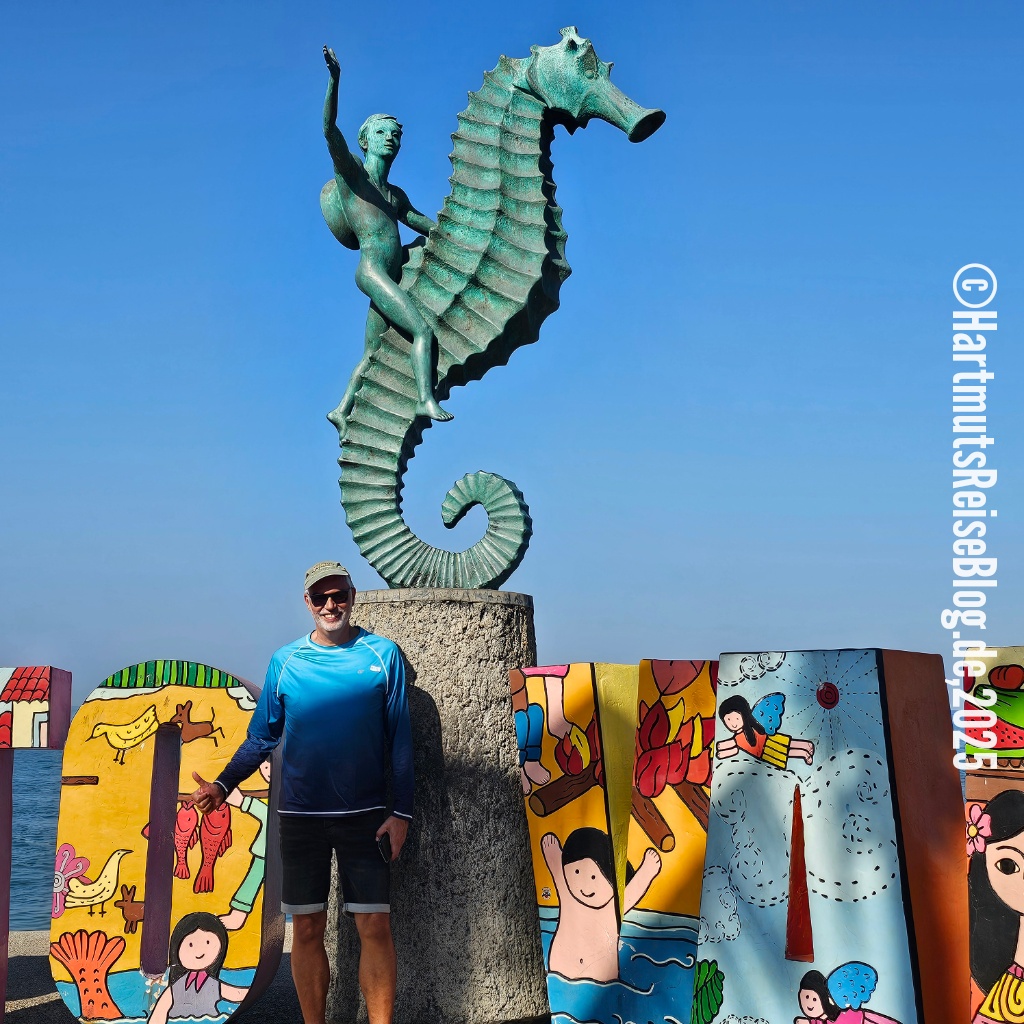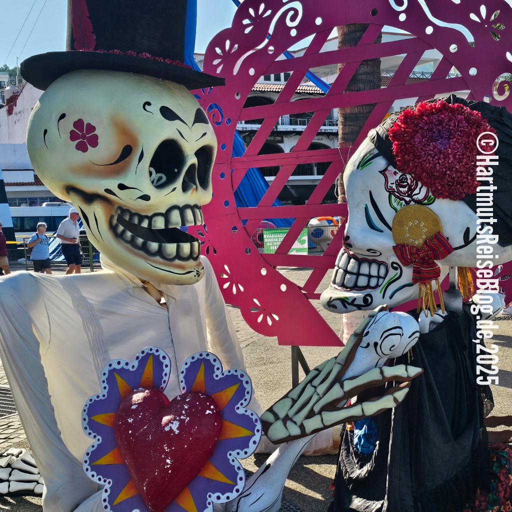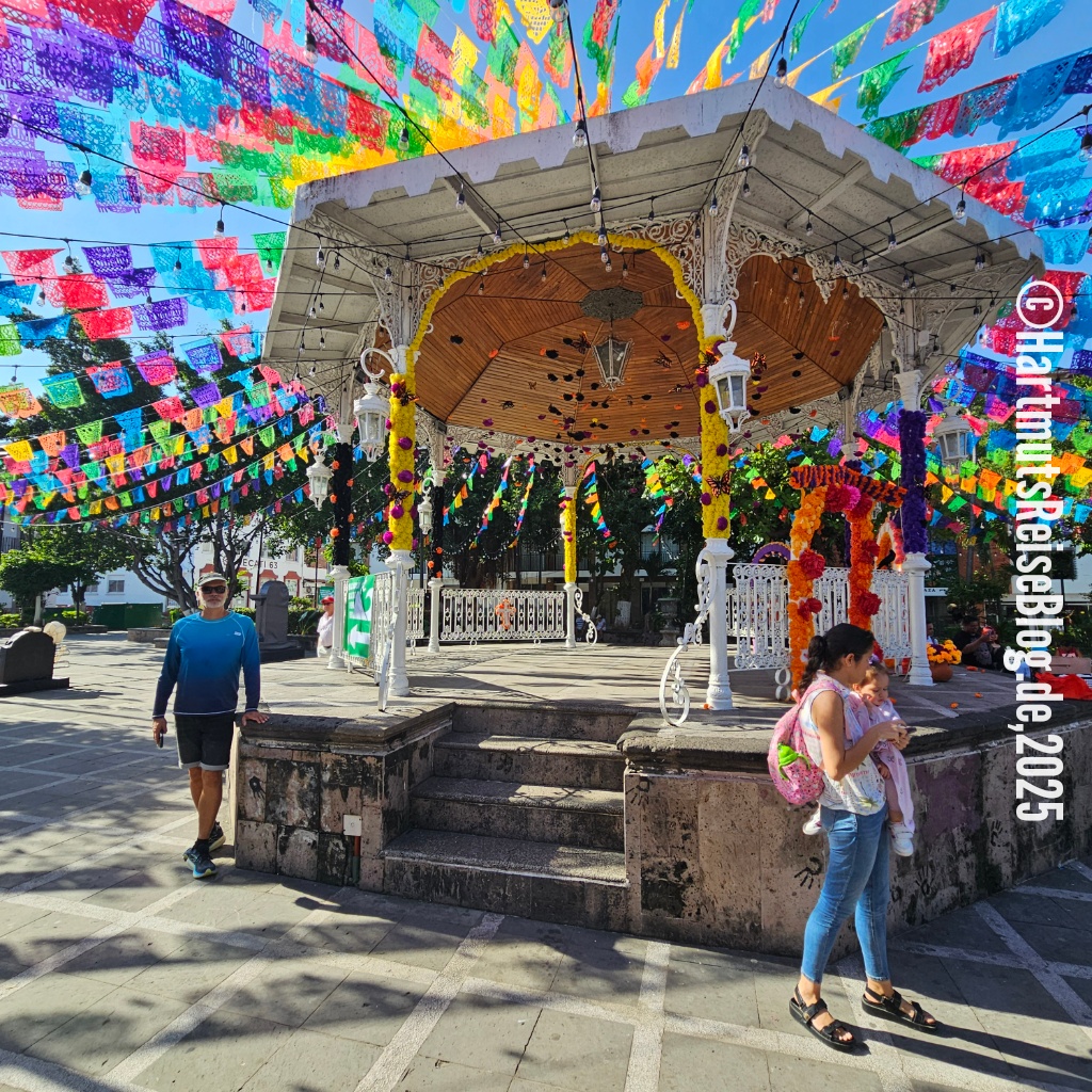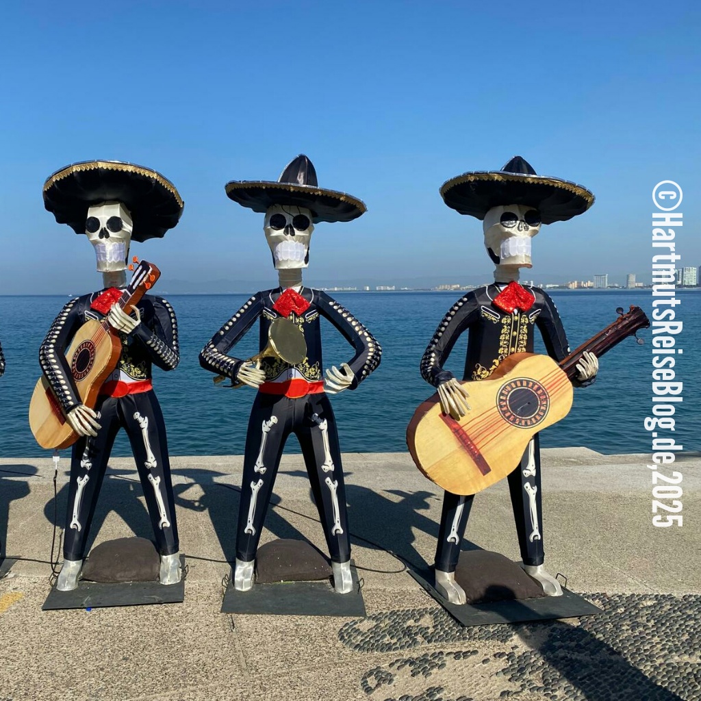 Pünktlich kommt unser Schiff in Puerto Vallarta an. Gegen halb neun gehen wir von Bord. Zuerst bringt uns der Bus (mit Führer “crazy” Mario) zur Strandpromenade und zur Kathedrale im Zentrum von Puerto Vallarta. Viele Teilnehmer dieses Ausflugs sind sehr alt und gebrechlich. Nicht wenige sind auf Gehhilfen angewiesen. Die Straßen sind mit großen Steinen gepflastert. Damit sind Geschwindigkeitsbegrenzungen völlig überflüssig. Außerdem fallen mir die vielen Regenbogenflaggen auf. Wir wissen von Bekannten in San Diego, dass Puerto Vallarta ein beliebtes Reiseziel für Schwule ist. Es sollen übrigens 40.000 Amerikaner dauerhaft in dieser rasant wachsenden Stadt leben. Hinzu kommen die vielen Besucher aus Nordamerika und Europa (vor allem Niederländer und Briten).