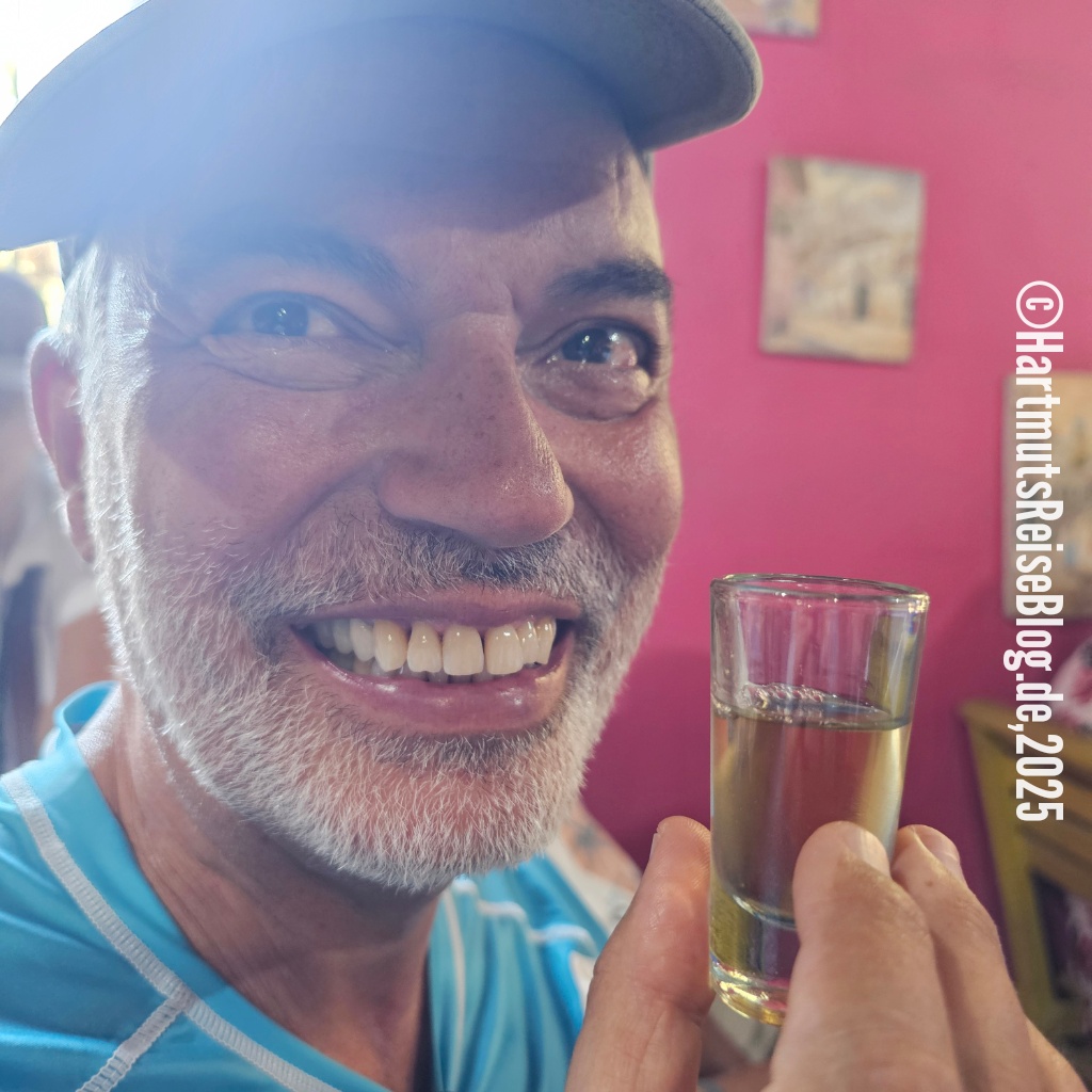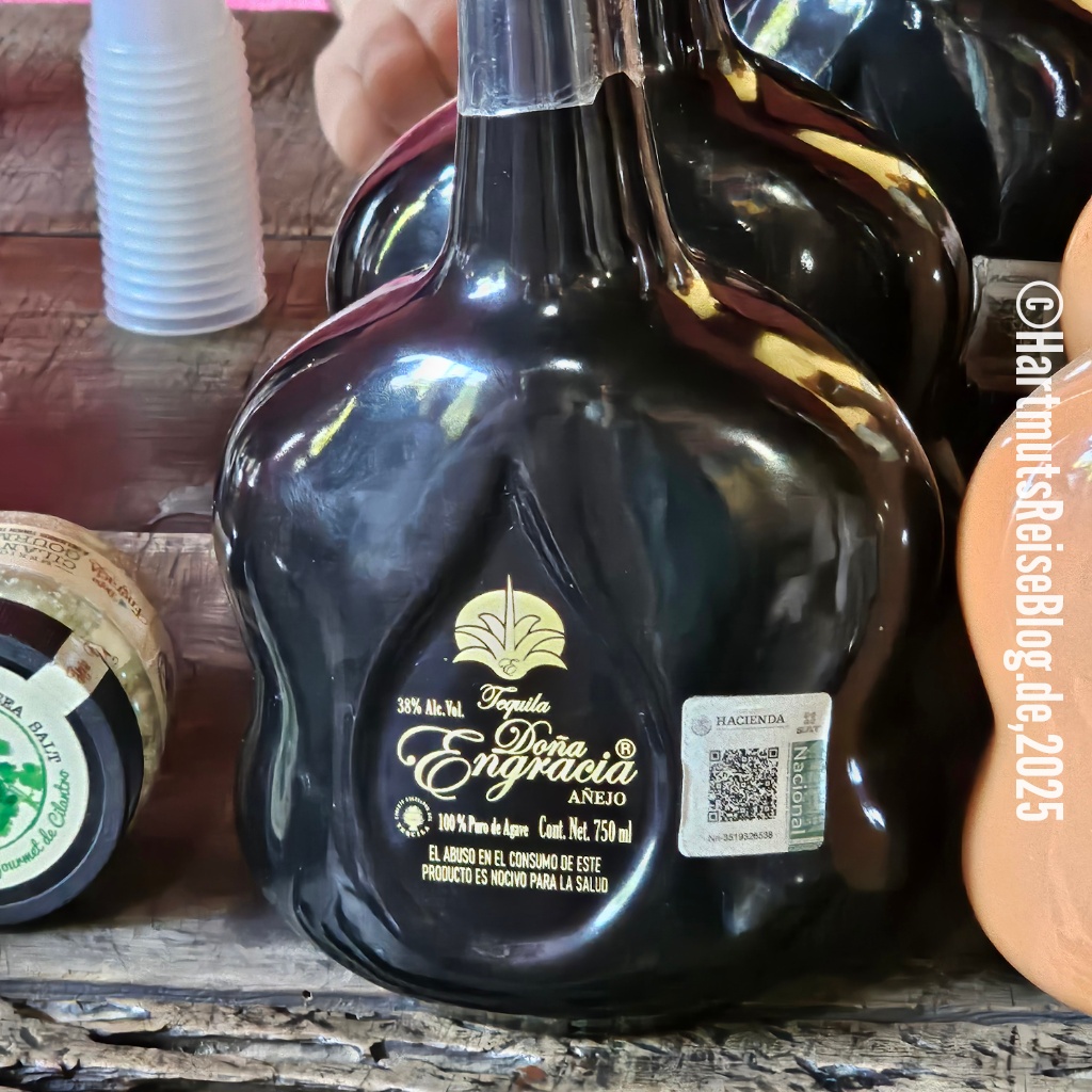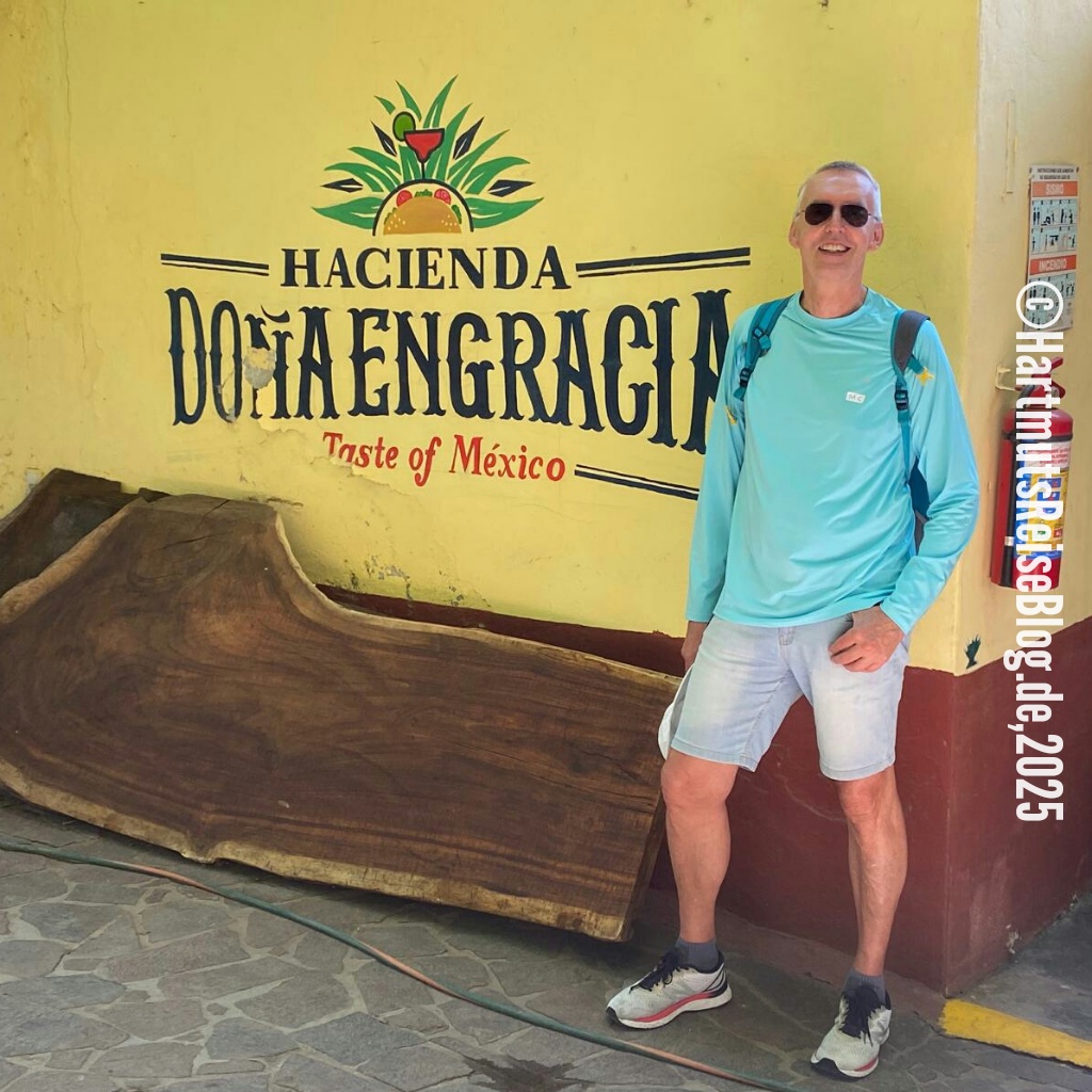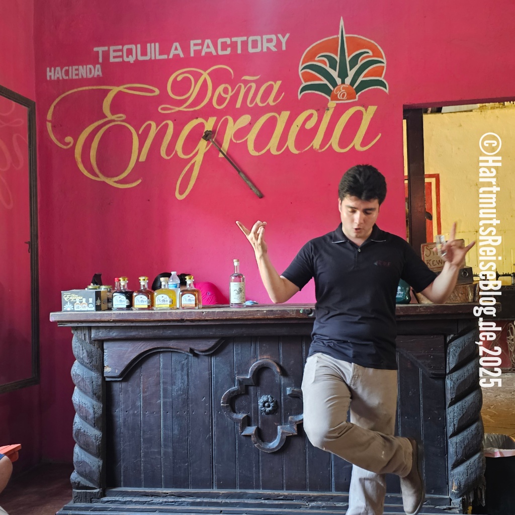 Vom Zentrum Puerto Vallartas fahren wir zu einer Tequilafabrik. Uns wird zunächst der Produktionsprozess erläutert. Dann wird ausgiebig probiert. Bei diesem schwülen Wetter verzichten wir lieber auf einige Runden. Nach dem Trinken kommt das mexikanische Essen. Wie immer lecker, aber optisch kein Genuss. Der Besuch auf der “Hacienda Doña Engracia” endet mit einer folkloristischen Aufführung. Mir ist nicht klar, ob diese “fiesta mexicana” authentische Folklore und eine Inszenierung für Touristen ist. Nach dieser “fiesta mexicana” habe ich Andreas “angedroht”, meine mexikanischen Andenken (Sombrero, handgefertigte Hängematte, große Decke mit mexik. Muster, zerbrochenes Onyx-Schachspiel und silberne Kerzenhalter) nach Jahrzehnten wieder aus dem Keller zu holen. Ich hatte sie in den Siebzigerjahren während meiner ersten Mexikoreise in verschiedenen Teilen des Landes (und in Guatemala) gekauft.