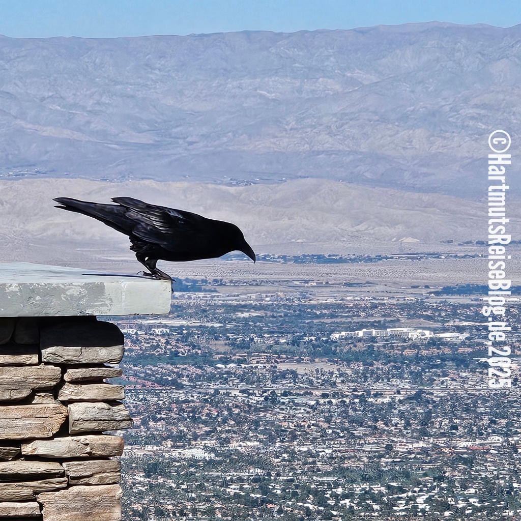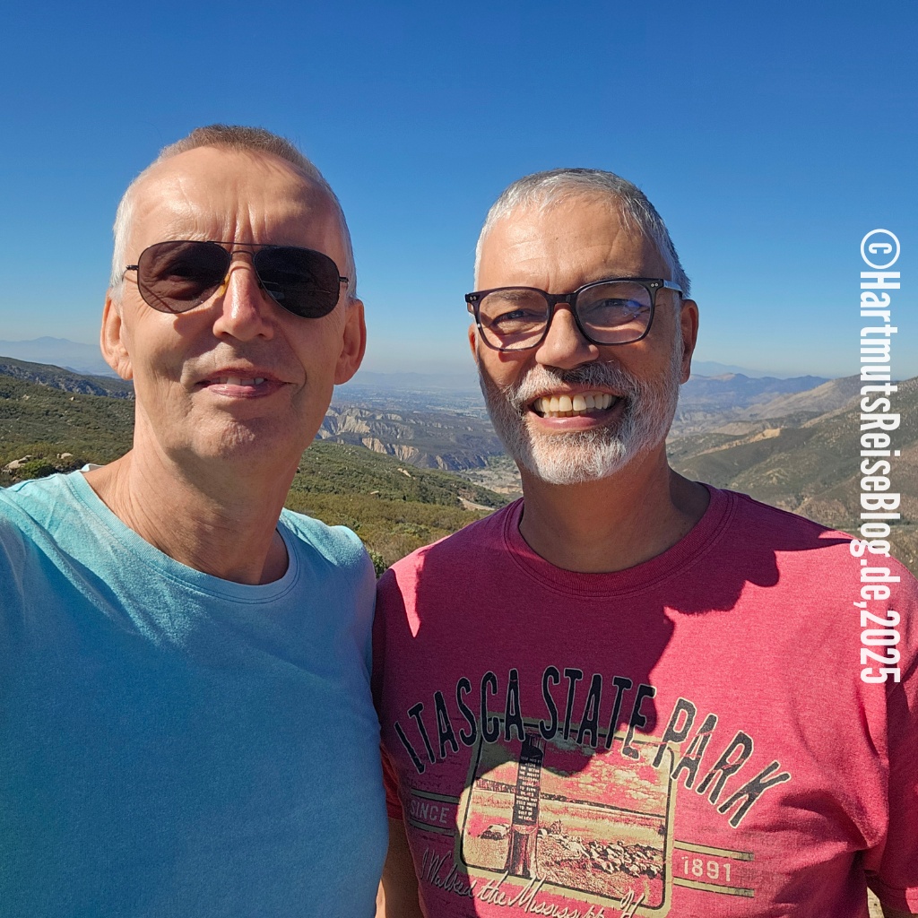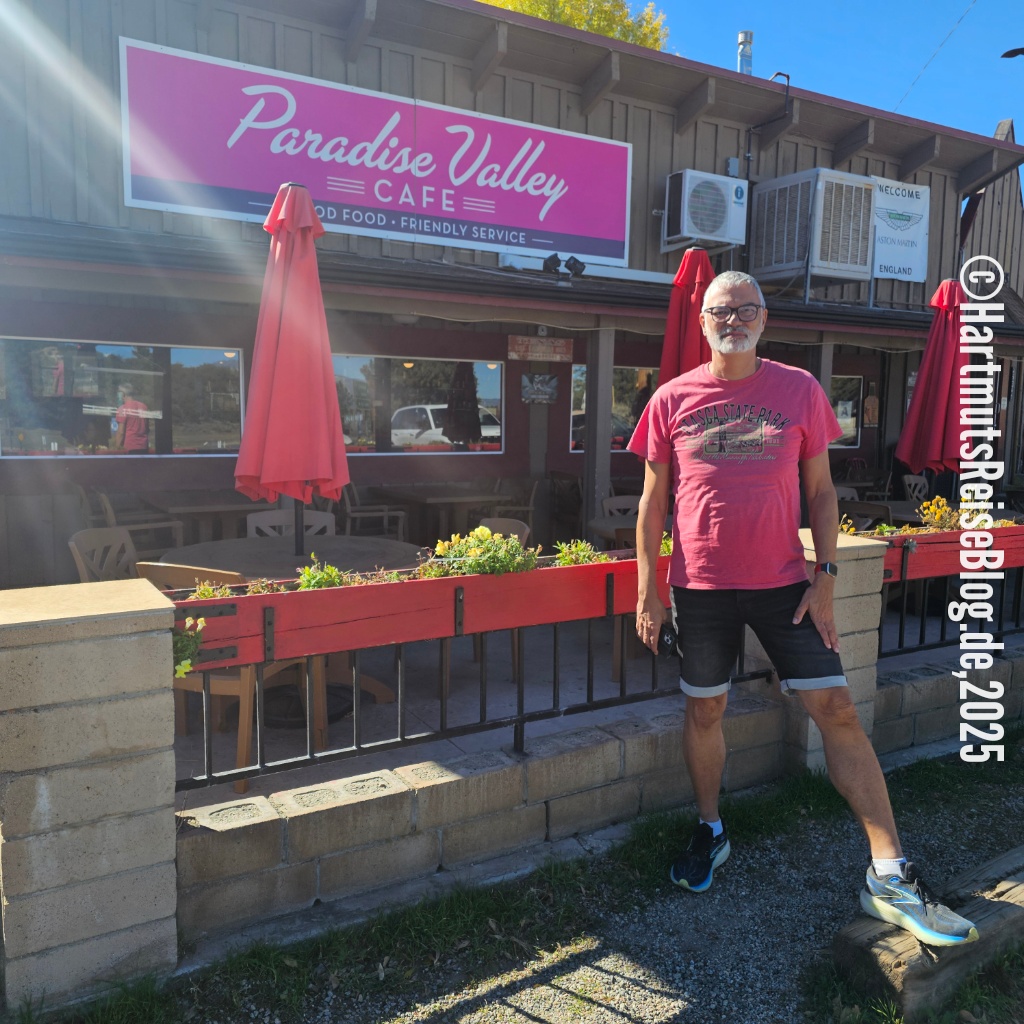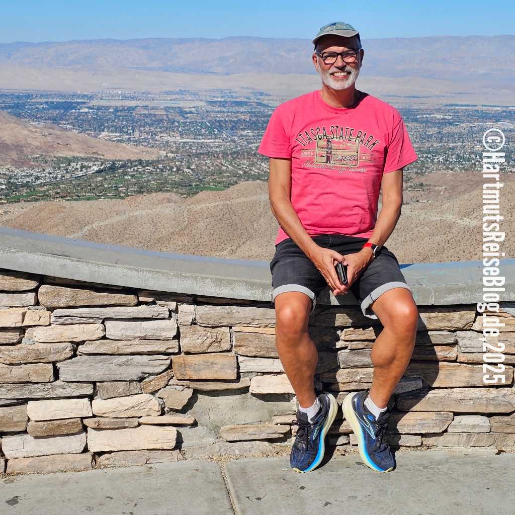 Heute verlassen wir das Coachella Valley, das Tal, in dem auch Palm Springs liegt. Wir fahren den Pines to Palms Highway hinauf und genießen den Ausblick auf das Tal und die San-Jacinto-Berge. Dabei überwinden wir einen Höhenunterschied von knapp 1.500 Metern, bevor wir das Paradise Valley Café erreichen. Dort frühstücken wir mal wieder amerikanisch-mexikanisch. Die beiden Kellnerinnen sind sehr aufmerksam und interessiert. Wir beschließen auch am Freitag auf unserer Fahrt nach San Diego hier zu frühstücken.