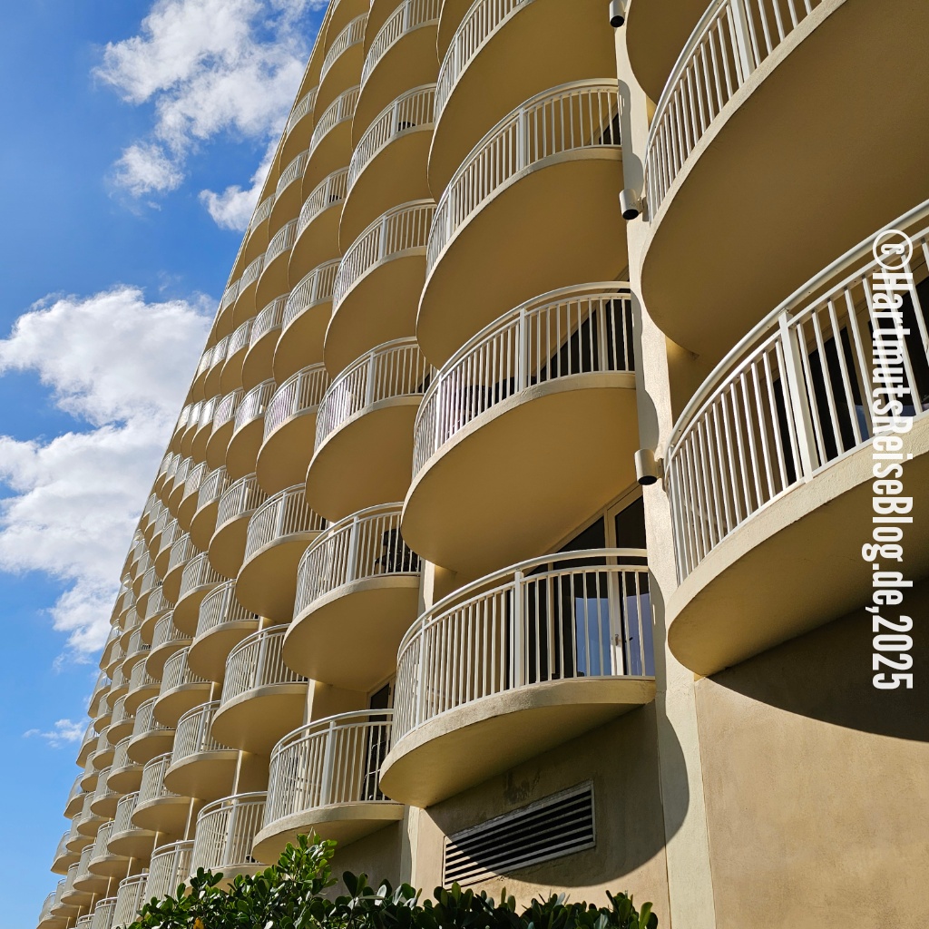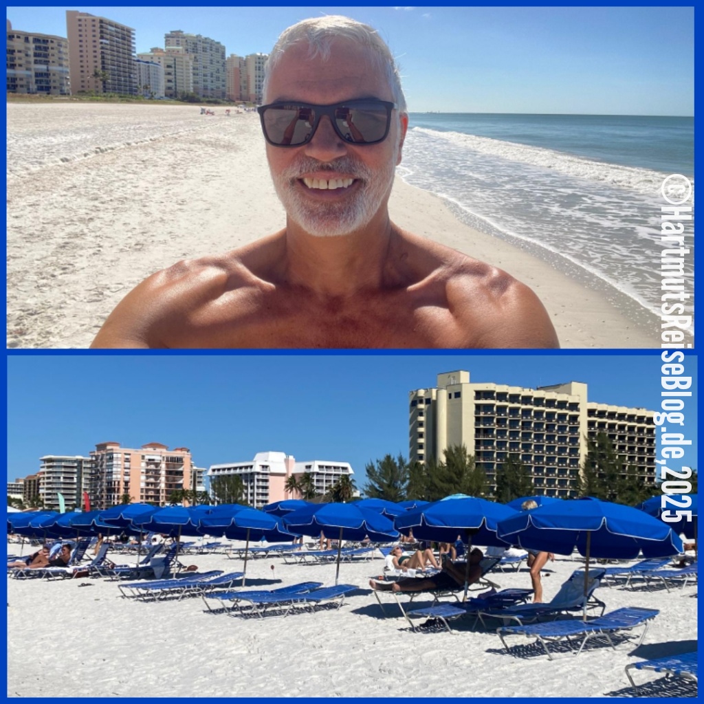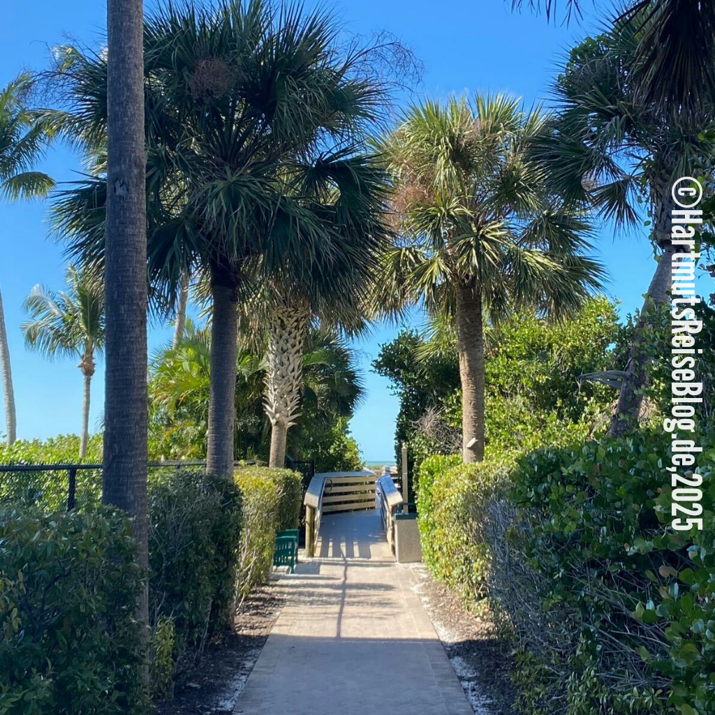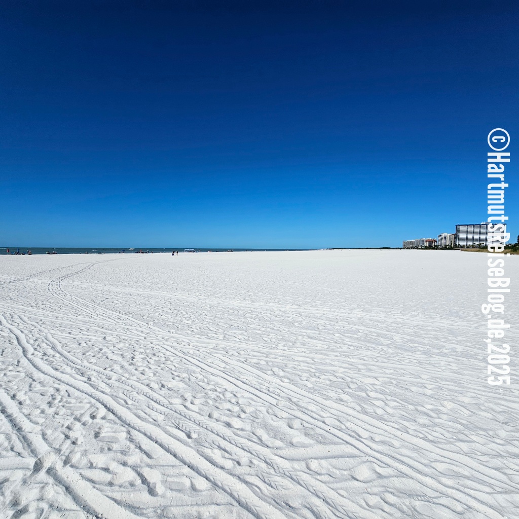 Ein weiteres Problem ist häufig der schwer zu findende Zugang zum Strand. Fast überall steht “No beach access”. Die Strände sind öffentlich, aber man muss erstmal dorthin kommen. Unser Strandzugang ist schmal, aber der Strand ist riesig. Für 50 Dollar bekommen wir zwei Liegen, einen Sonnenschirm und zwei Handtücher. Außerdem gibt es einen Essens- und Getränkeservice: Man bestellt, bekommt eine gut sichtbare Nummer und einige Zeit später wird die Bestellung an die Liege ausgeliefert. Der Service ist mit motorisierten Fahrzeugen unterwegs, denn der Weg vom Hotel (JW Marriott) bis zu den Liegen ist erheblich. Typisch Amerika: super Service!