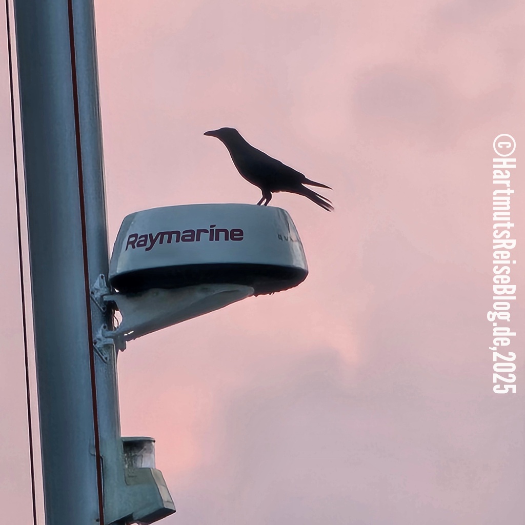 Das Wetter bleibt den ganzen Tag über ungewöhnlich: sehr windig und deutlich kühler als üblich. Morgen werden sogar nur 22 Grad Höchsttemperatur erwartet. Auffällig sind auch die lauten Fischkrähen, die plötzlich in großer Zahl auftauchen und auf einmal wieder verschwunden sind.