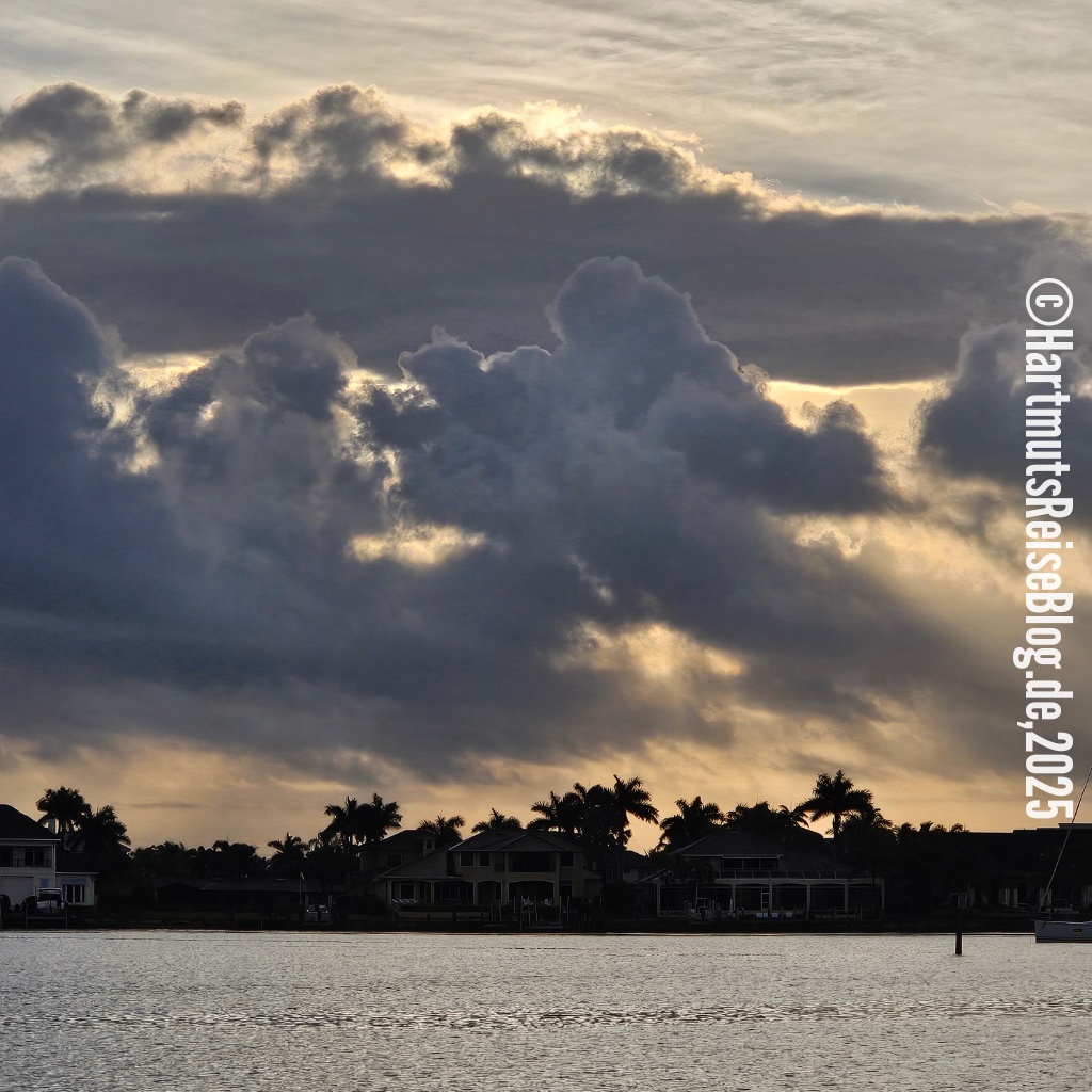 Heute ist auf Marco Island alles anders: Morgens weckt uns ein Regenschauer. Noch vor dem Frühstück drehen wir eine erste Runde durch den ungewöhnlich ruhigen Ort. Fast alle Läden und Restaurants sind geschlossen, denn heute ist Thanksgiving. Dieser Feiertag dient dem Essen und Danken im Kreis der Familie. Seit 1941 fällt er fest auf den vierten Donnerstag im November. Die heutigen Bräuche wie Truthahnessen, Familientreffen und Football bestehen etwa seit den 1920er Jahren.