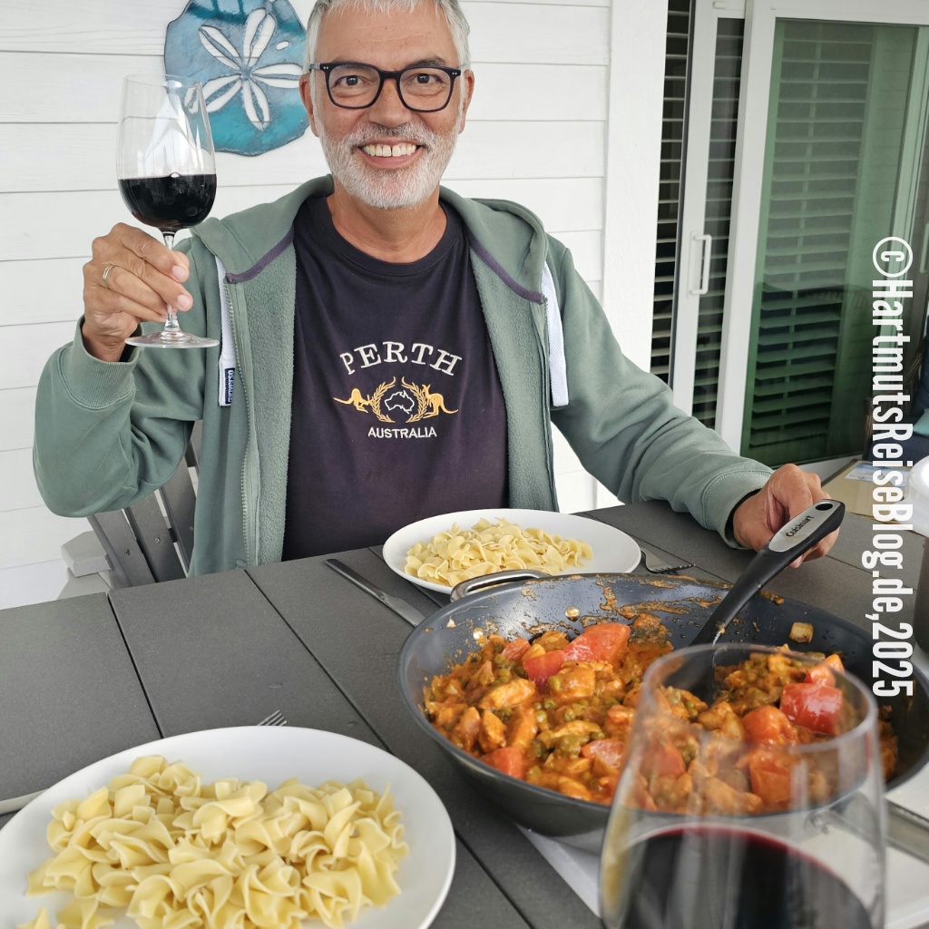 Am späten Nachmittag bereitet Andreas unser Thanksgiving-Essen zu: Statt Truthahn gibt’s Hähnchen. Sehr lecker!