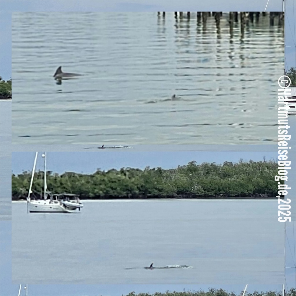 Immer wieder sehen wir Delfine – leider meist viel zu kurz für ein Foto. Nur selten haben wir Glück: