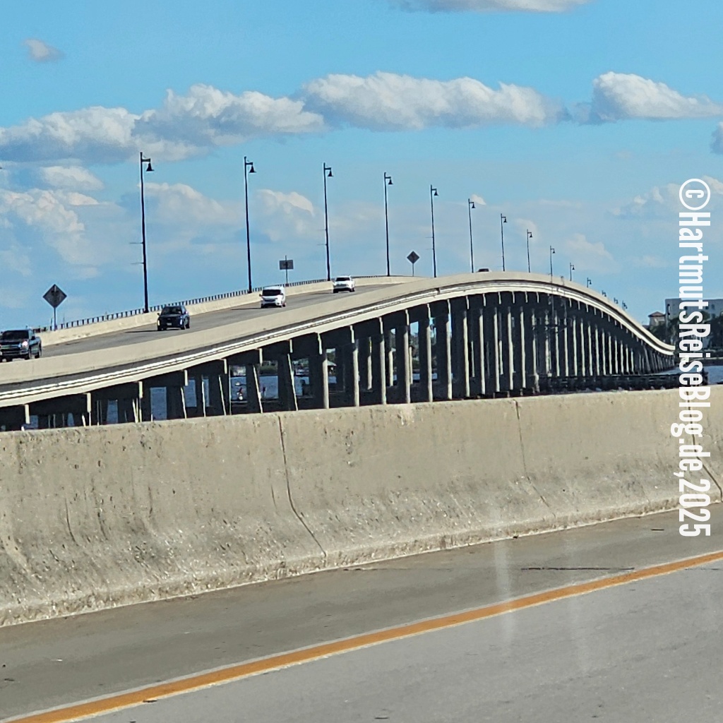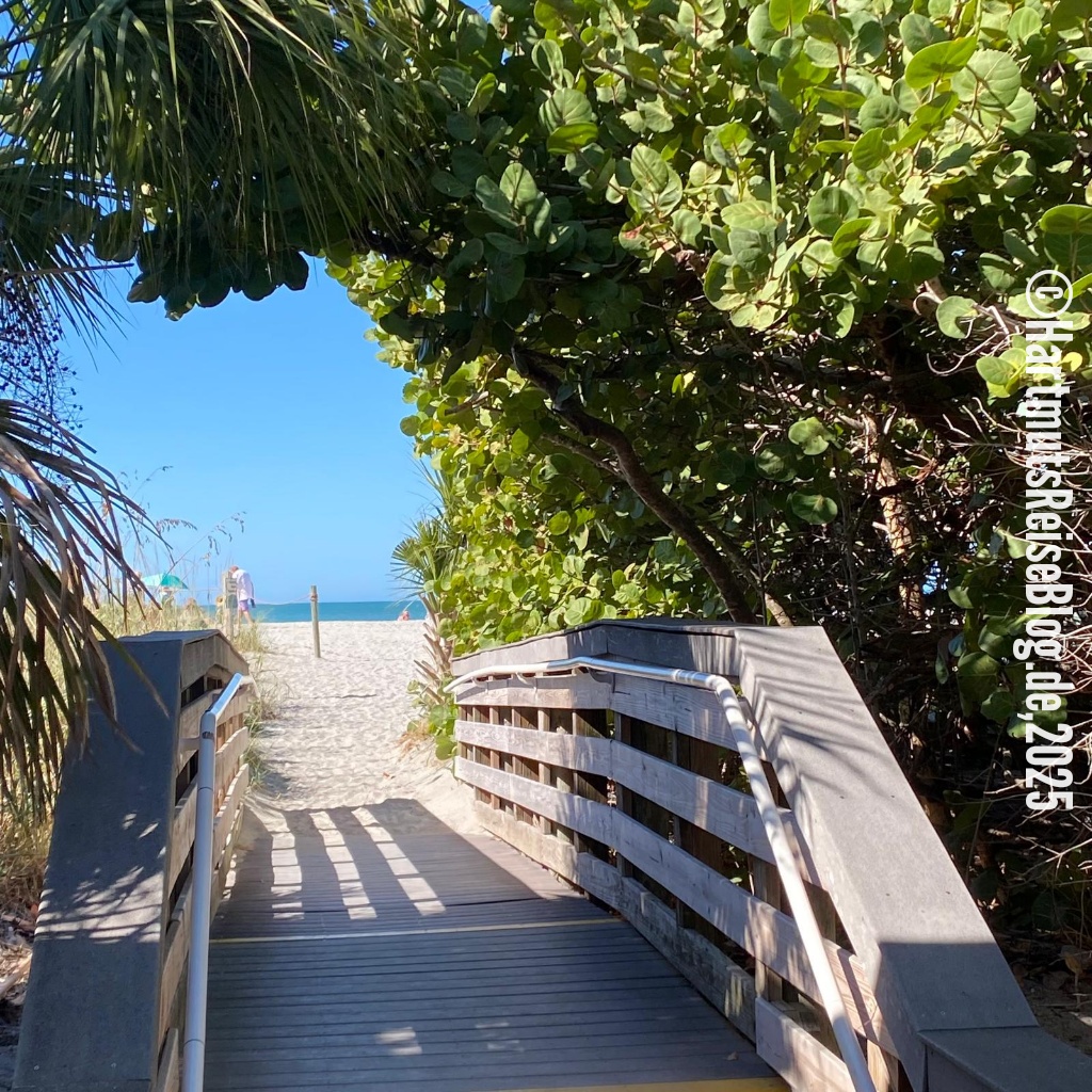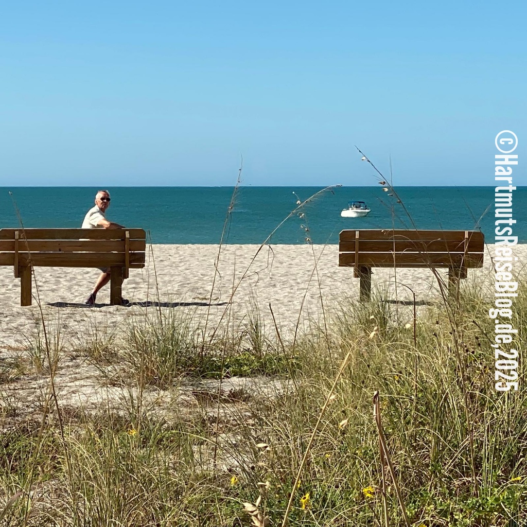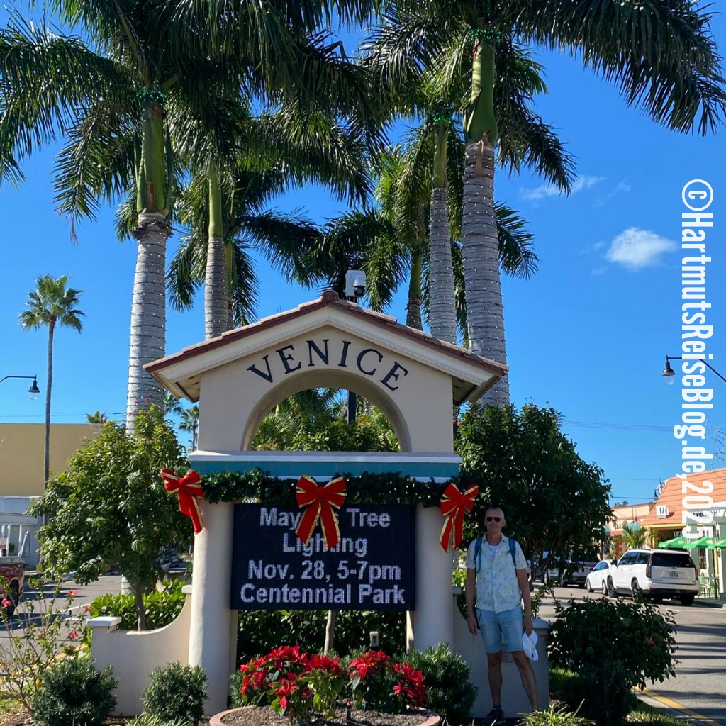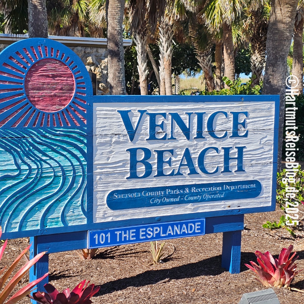 Nach dem Frühstück beginnt unser längster Ausflug von Marco Island aus. Wir fahren zwei Stunden auf der Interstate 75 in Richtung Norden. Ziel ist Venice, ein Ort, den wir zu kennen glauben. Wir waren schon mehrfach hier, aber mein Gedächtnis hat mich ziemlich im Stich gelassen und meine Erinnerungen an Naples und Venice durcheinandergebracht. In Venice parken wir an zentraler Stelle und wandern von dort zum Venice Beach und dann weiter zu einem Jetty. Als wir ankommen, müssen wir feststellen, dass dieser Steg gesperrt ist.