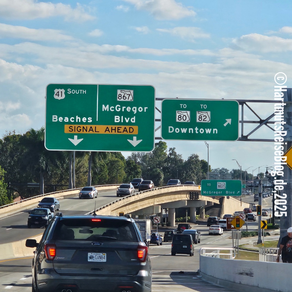 Von der Cheesecake Factory fahren wir zur nahegelegenen 5th Avenue von Naples, die jetzt in der Vorweihnachtszeit wunderschön beleuchtet ist. Danach geht’s bei Dunkelheit zurück nach Marco Island. Den gesamten Weg von Marco Island nach Venice und den größten Teil der Strecke von Venice nach Marco Island fährt Andreas unseren Chevrolet Blazer. Von den 400 Kilometern fahre ich nur zwei kleinere Teilstücke.