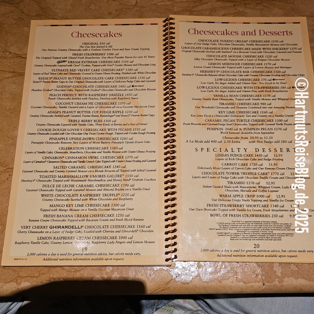 Auf dem etwas ruhigeren Highway 41 fahren wir zurück in südliche Richtung. In Naples essen wir in der Cheesecake Factory. Der nette Kellner, der sogar etwas Deutsch spricht, glaubt, Andreas schon mal gesehen zu haben. Eine nette Anmache.