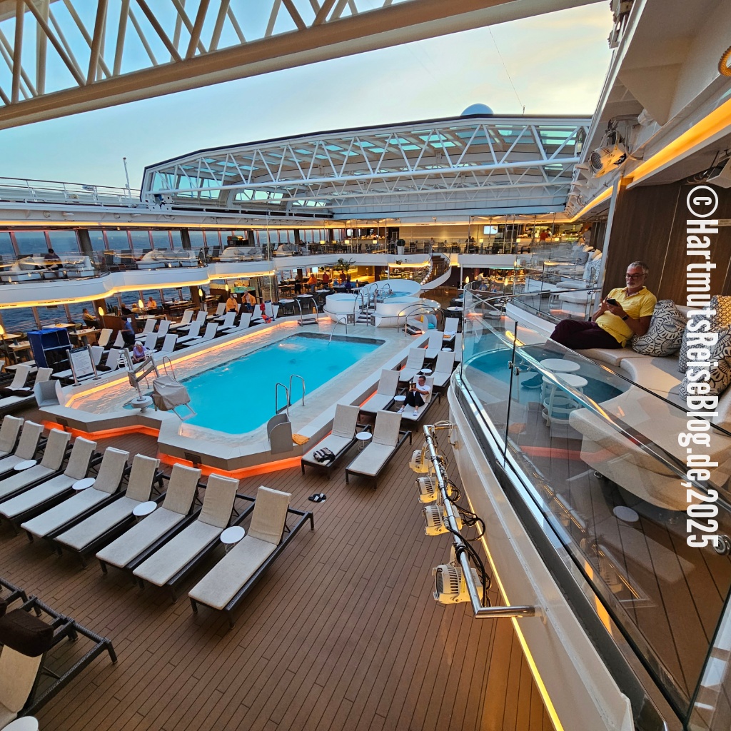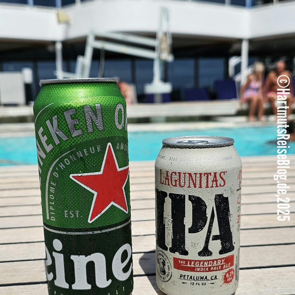 Später gehen wir wieder zum Sea View Pool. Dort gibt’s ein kühles Bier und später ein Eis, das bei knapp 30 Grad schnell schmilzt.